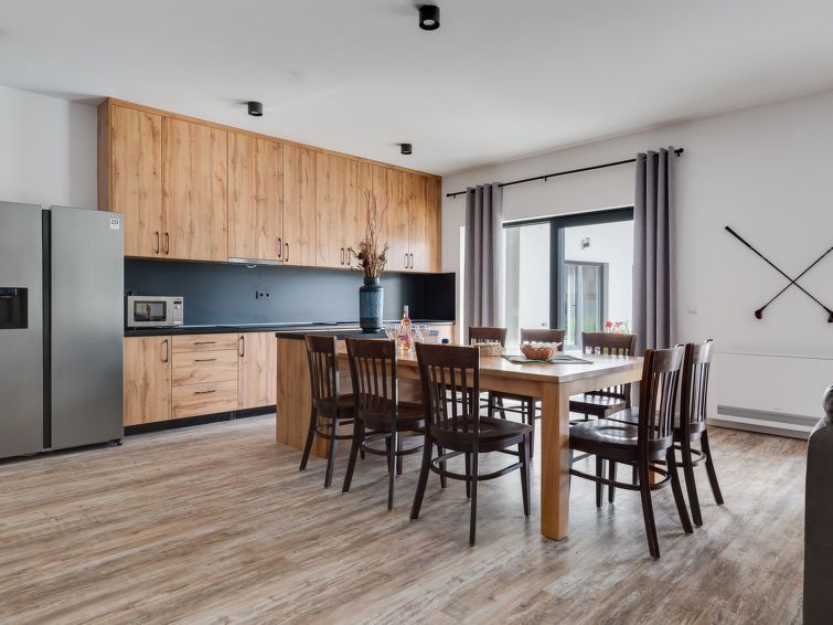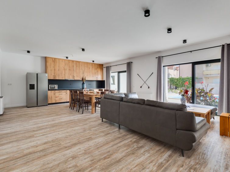 4-room house 260 m2, south-west facing position. Modern furnishings: living/dining room 40 m2 with satellite TV (flat screen), air conditioning. Exit to the terrace. 2 rooms, each room with 1 french bed (160 cm, length 200 cm), shower/WC and air conditioning. 1 room with 1 french bed (160 cm, length 200 cm), shower/WC and air conditioning.