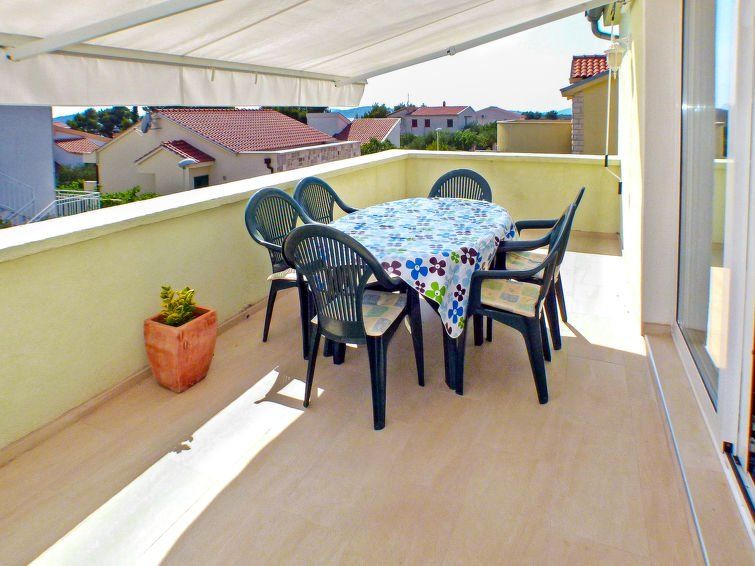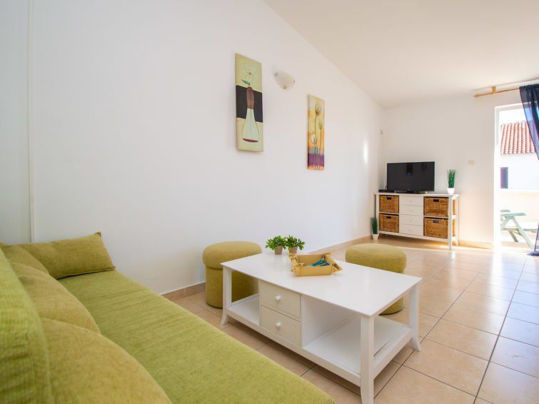 3-room apartment 50 m2 on 1st floor, south facing position. Beautiful and cosy furnishings: living/dining room with satellite TV, flat screen and air conditioning. Exit to the terrace. 1 room with 1 double bed (2 x 80 cm, length 200 cm). 1 room with 2 beds (80 cm, length 200 cm). Open kitchen (2 hot plates, microwave, freezer, electric coffee machine).