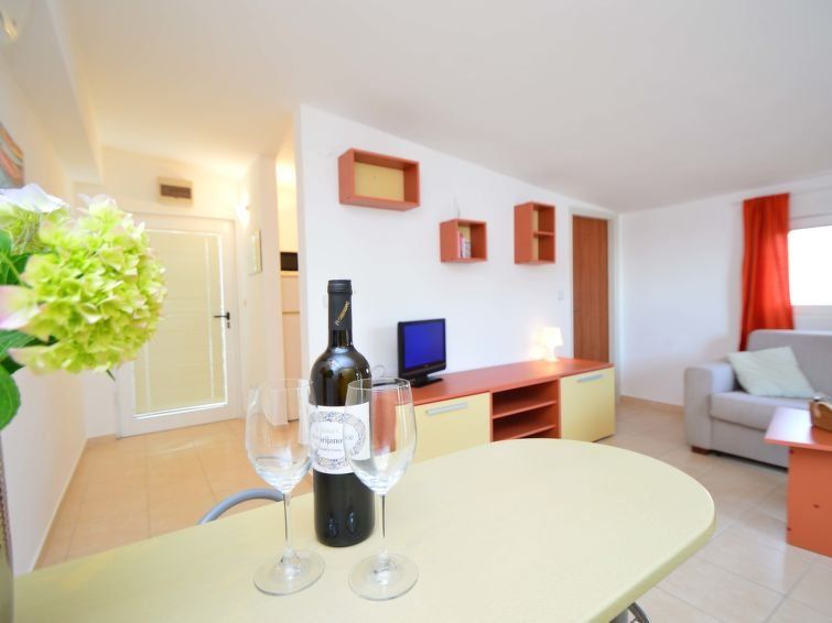 1-room apartment 25 m2 on 1st floor, south facing position. Beautiful and cosy furnishings: living/sleeping room with 1 double sofabed (140 cm, length 200 cm), dining table, satellite TV and air conditioning. Exit to the terrace. Kitchenette (2 hot plates, microwave, electric coffee machine).