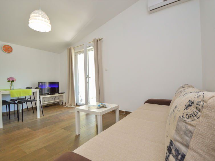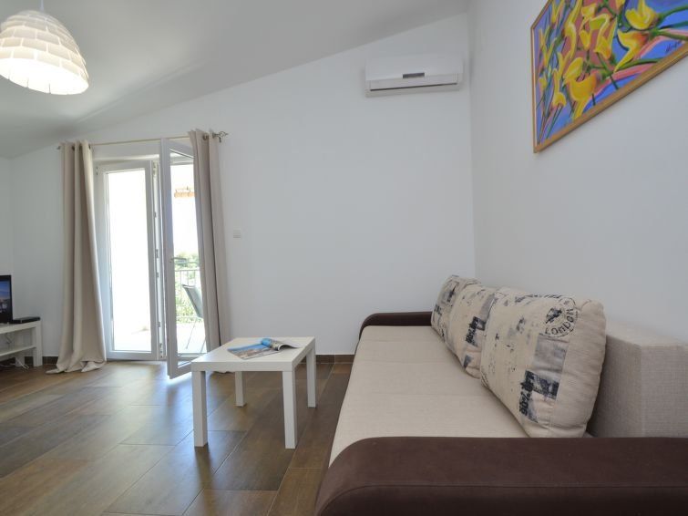 2-room apartment 40 m2 on 2nd floor, south-west facing position. Living/dining room with 1 double sofabed (160 cm, length 200 cm), satellite TV (flat screen), air conditioning. Exit to the terrace. 1 room with 1 french bed (160 cm, length 200 cm). Open kitchen (2 ceramic glass hob hotplates, microwave, freezer, electric coffee machine).
