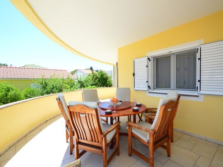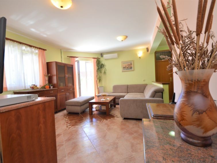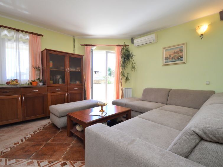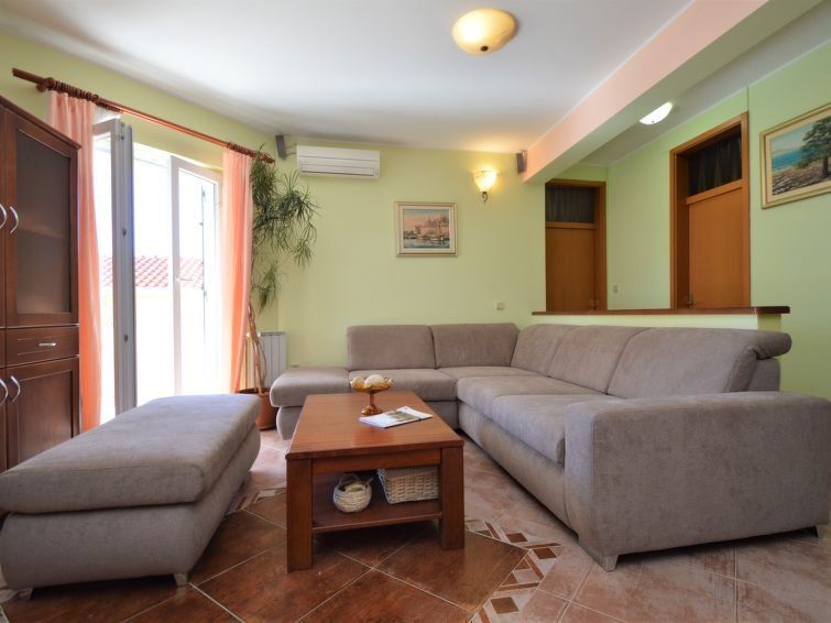 4-room apartment 100 m2, on the upper ground floor, south facing position. Living/dining room 50 m2 with 1 double sofabed (140 cm, length 210 cm), satellite TV (flat screen), air conditioning. Exit to the terrace. 1 room with 1 french bed (160 cm, length 200 cm). 1 room with 1 french bed (180 cm, length 200 cm).