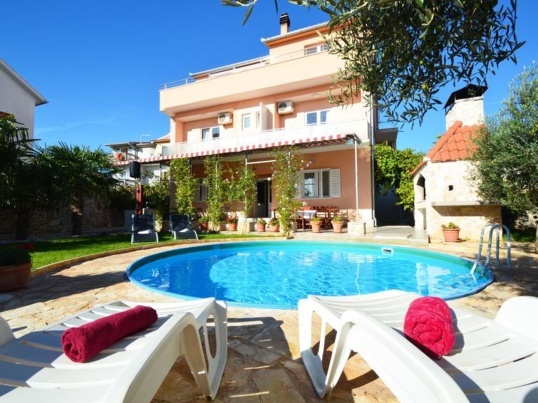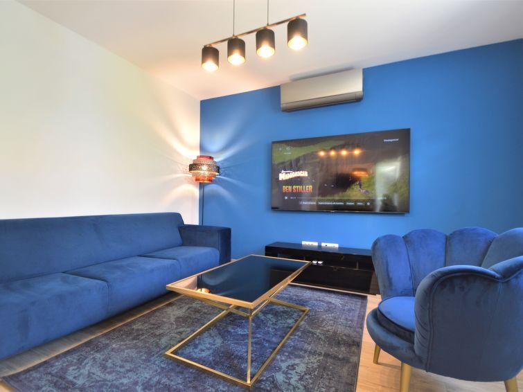 8-room apartment 185 m2 on 2 levels, south facing position. Beautiful and cosy furnishings: living/dining room 40 m2 with satellite TV (flat screen), air conditioning. Exit to the terrace. 1 room with 1 double bed (2 x 90 cm, length 200 cm), shower/WC. 1 room with 1 double bed (2 x 90 cm, length 200 cm).