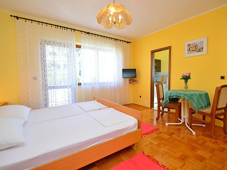 1-room apartment 25 m2 on 1st floor. Studio with 1 double bed (2 x 90 cm, length 190 cm), dining table and satellite TV (flat screen). Exit to the balcony. Kitchen (2 hot plates, electric coffee machine). Shower/WC. No heating option. Balcony 5 m2. Balcony furniture. Facilities: Internet (WiFi, free)..