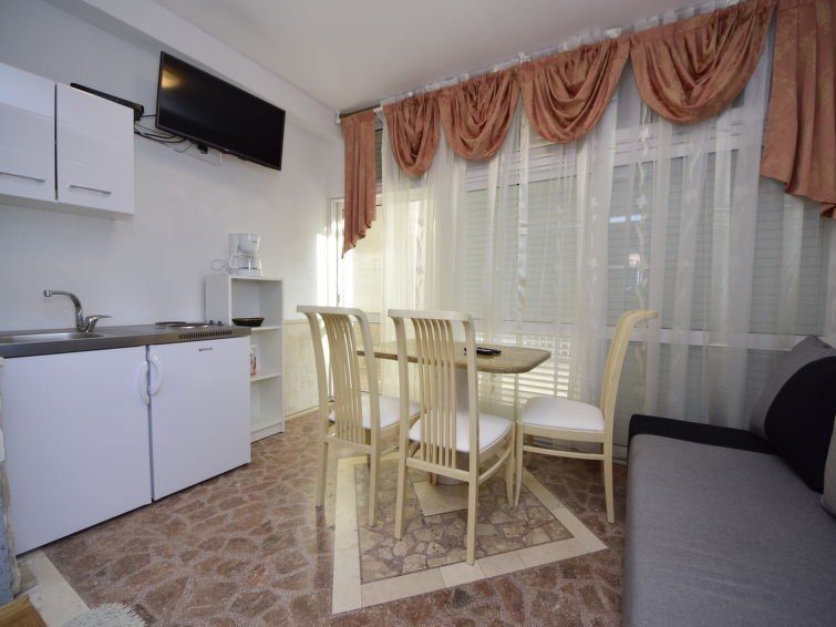 5-room apartment 110 m2, on the ground floor. Living/sleeping room with 1 french bed (160 cm, length 200 cm), dining table, kitchen corner, shower/WC and satellite TV (flat screen), air conditioning. Exit to the terrace. Living/dining room with satellite TV (flat screen), air conditioning.