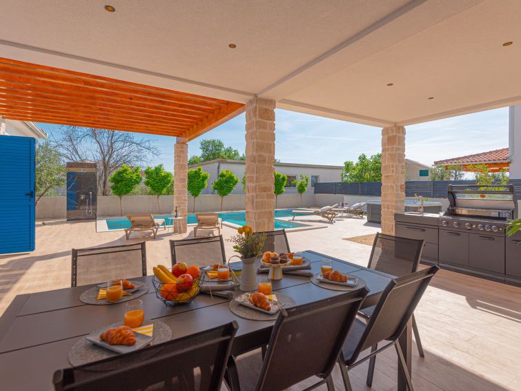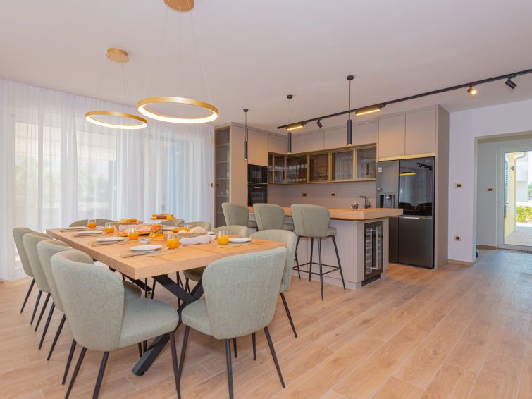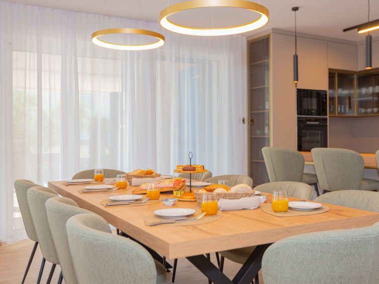 6-room villa 240 m2 on 2 levels, south-west facing position. Luxurious furnishings: living/dining room 70 m2 with open-hearth fireplace (only for decoration), satellite TV (flat screen), air conditioning. Exit to the terrace. 1 room with 1 french bed (180 cm, length 200 cm), shower/WC, satellite TV, flat screen and air conditioning.