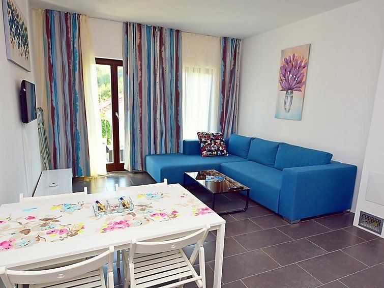 3-room apartment 67 m2 on 2nd floor, east facing position. Living/dining room with 1 double sofabed (140 cm, length 200 cm), satellite TV (flat screen), air conditioning. Exit to the balcony. Entrance hall with air conditioning. 2 rooms, each room with 1 french bed (160 cm, length 200 cm).