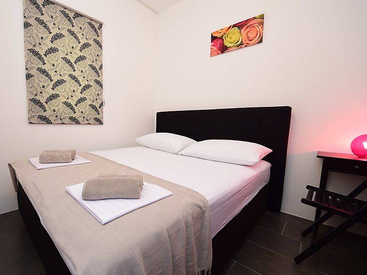 3-room apartment 62 m2 on 1st floor, east facing position. Living/dining room with 1 double sofabed (140 cm, length 200 cm), satellite TV (flat screen), air conditioning. Exit to the balcony. Entrance hall with air conditioning. 1 room with 1 french bed (160 cm, length 200 cm). Exit to the terrace.