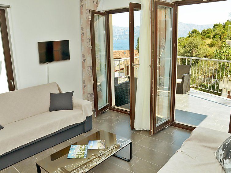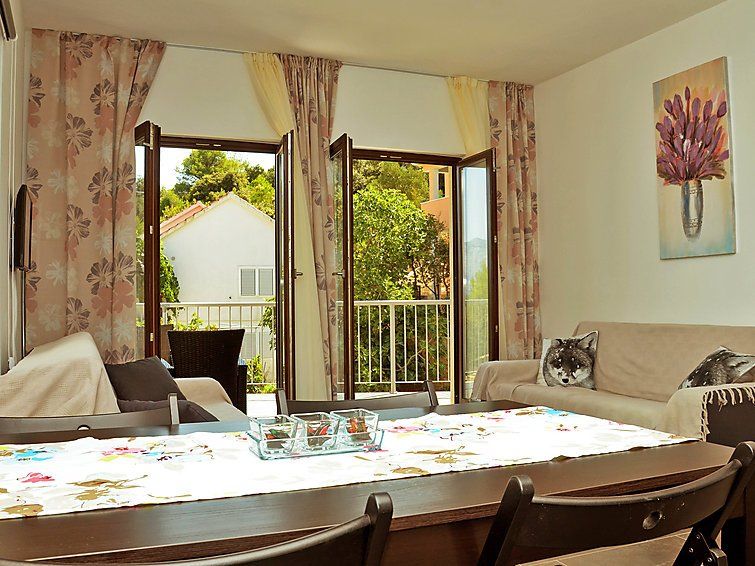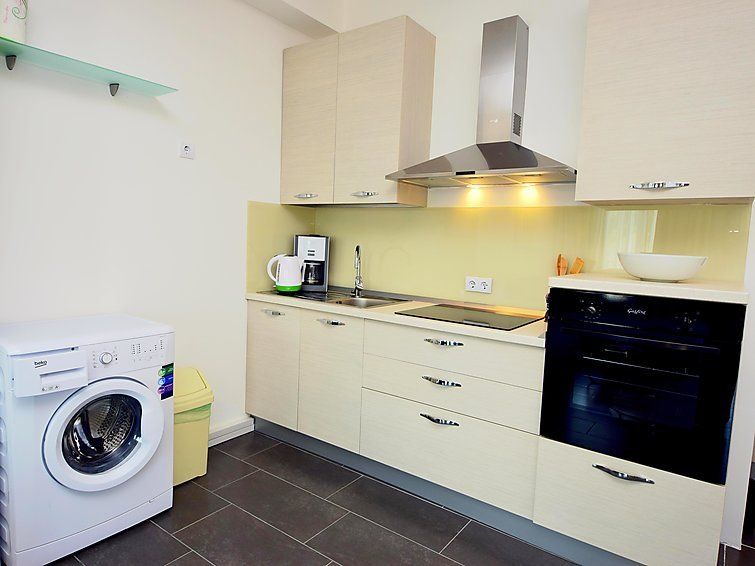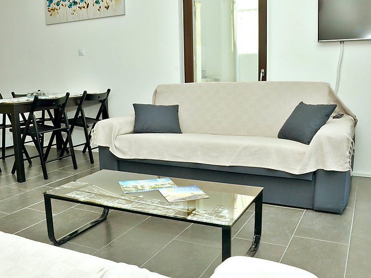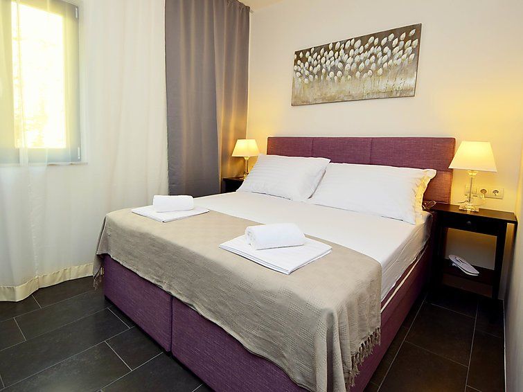 3-room apartment 70 m2 on 1st floor, east facing position. Living/dining room with 1 double sofabed (140 cm, length 200 cm), satellite TV (flat screen), air conditioning. Exit to the balcony. Entrance hall with air conditioning. 1 room with 1 french bed (160 cm, length 200 cm). Exit to the terrace.