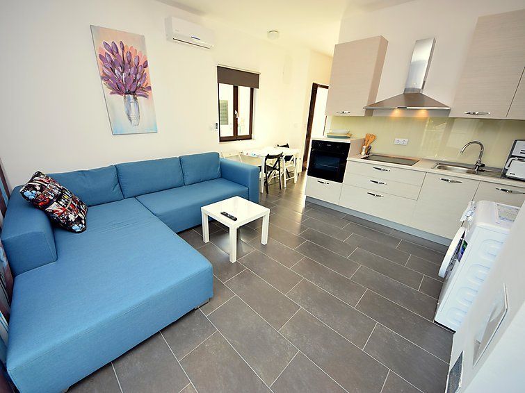 3-room apartment 61 m2 on 2nd floor, east facing position. Living/dining room with 1 double sofabed (140 cm, length 200 cm), satellite TV (flat screen), air conditioning. Exit to the balcony. Entrance hall with air conditioning. 2 rooms, each room with 1 french bed (160 cm, length 200 cm).