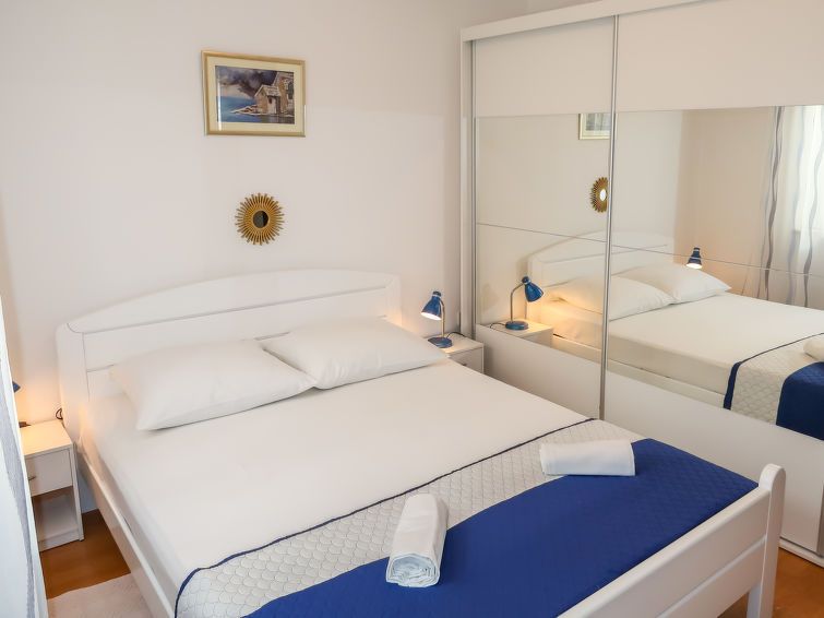 "Ana", 3-room apartment 50 m2, on the upper ground floor. Living/dining room with 1 sofabed, satellite TV and air conditioning. 1 room with 1 double bed. 1 room with 2 beds. Open kitchen (4 hot plates, oven, dishwasher, toaster, electric coffee machine). Shower/WC. No heating option.