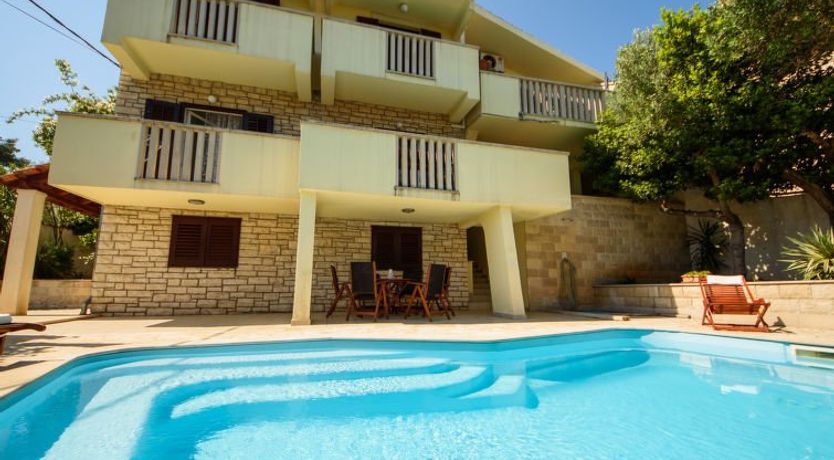 There were five of us women spending a vacation on the island of Brac. The house was really good. Each of us had our own bedroom. There were two bathrooms and a toilet by the pool. In terms of dishes and linens, the house was well equipped and all appliances worked. The environment was peaceful and the distance to the center was a suitable walk. A store was found nearby. Everything worked well and the holiday was relaxing.