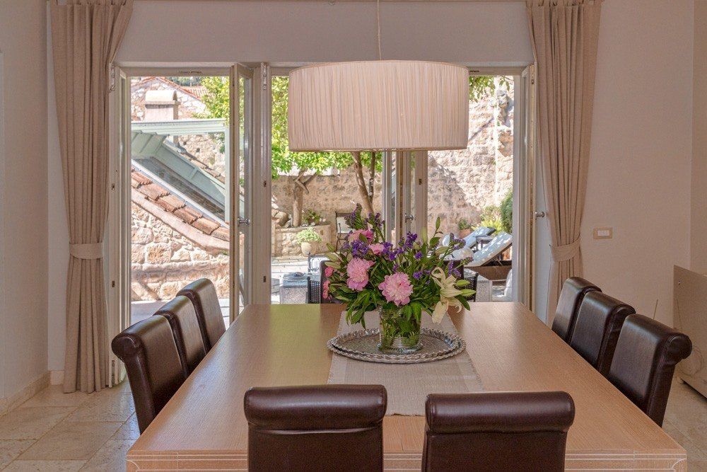 It sits in the heart of Hvar Town, where the balustraded stone balconies look out over the buzzing old harbour. The waterfront is just a few footsteps away. On the private terrace, a swimming pool awaits in an old gothic-style house. Thanks to glass folding walls, the pool can be indoor or outdoor. The Mediterranean gardens are secluded by high stone walls and terraces are shaded by fig and citrus trees. Dotted around the gardens, you’ll find loungers, outdoor dining and bistro seating fringed with fragrant lavender bushes.