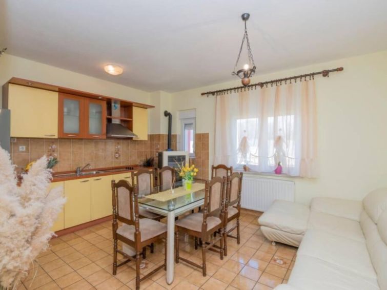 5-room house 160 m2 on 2 levels. Living/dining room with satellite TV (flat screen). Kitchen (oven, dishwasher, 4 ceramic glass hob hotplates, kettle, microwave, freezer) with dining table, fan. Upper floor: 2 rooms, each room with 1 french bed (180 cm, length 200 cm), fan. 1 room with 1 french bed (180 cm, length 200 cm), satellite TV (flat screen), fan.