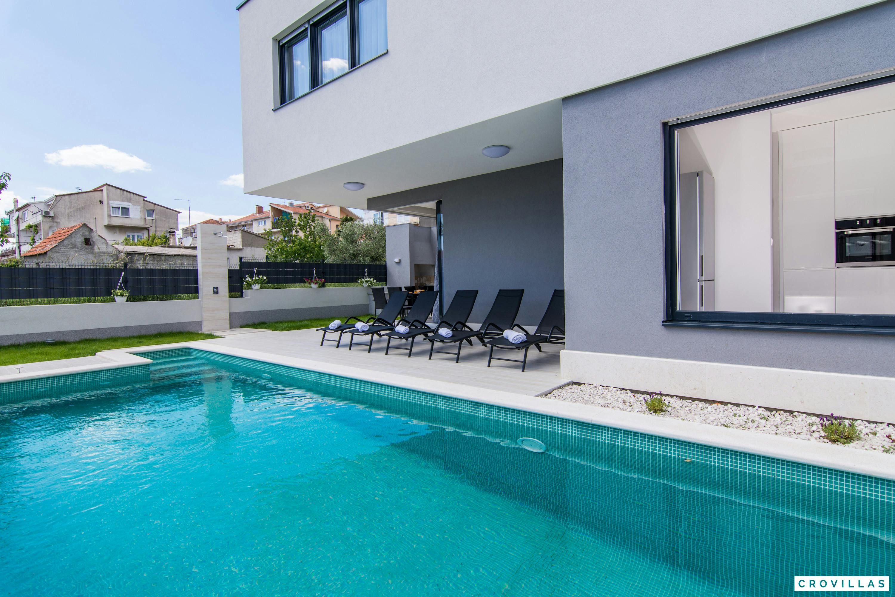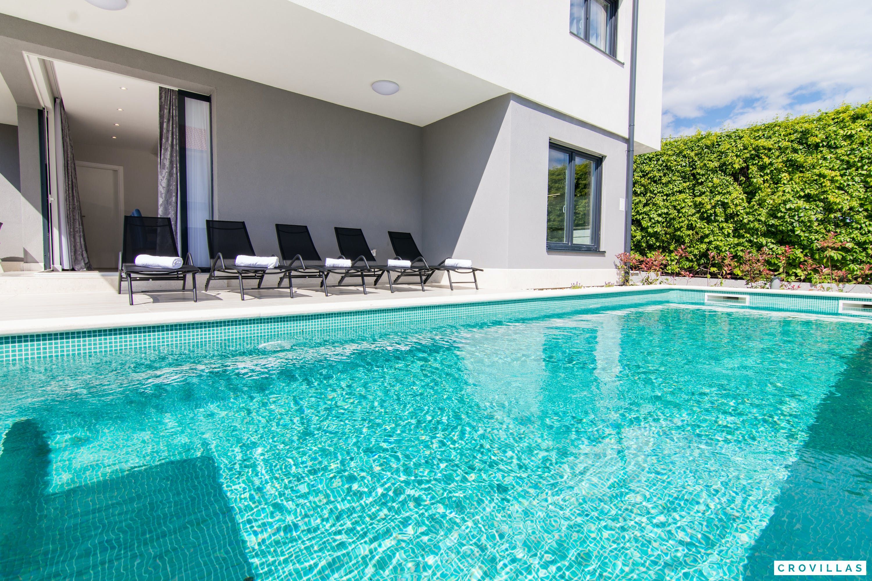 This modern villa near the sea in Croatia is the perfect place to relax and enjoy your vacation. The villa is located in the town of Kastela, which is known for its beautiful beaches, cultural highlights and traditional restaurants. The villa itself is equipped with everything you need for a comfortable stay, including a fully equipped kitchen, a washing machine and dryer and a free WiFi connection. The villa also has a private pool, a barbecue and a playground, so you can enjoy the outdoors to the fullest.