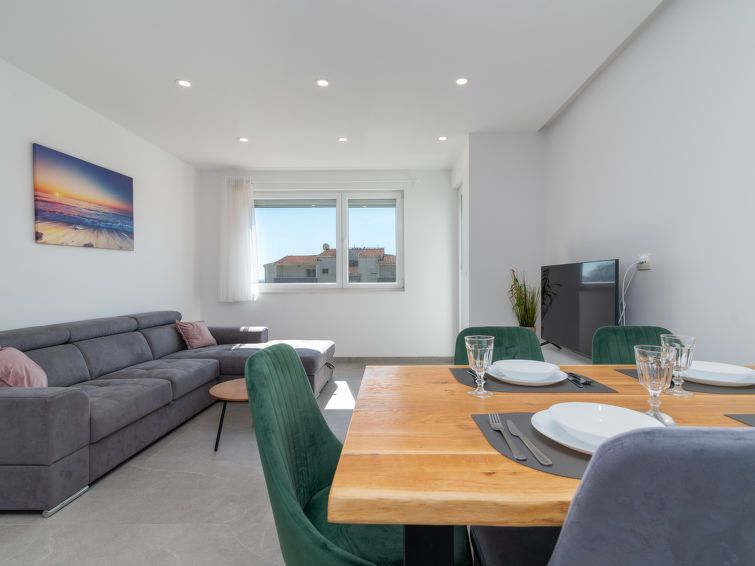 "M&M 1", 3-room apartment 60 m2 on 1st floor, south facing position. Living/dining room with 1 double sofabed (140 cm, length 200 cm), satellite TV (flat screen), air conditioning. Exit to the balcony. 1 room with 1 french bed (160 cm, length 200 cm). 1 room with 2 beds (90 cm, length 200 cm).
