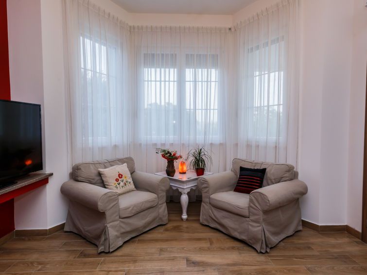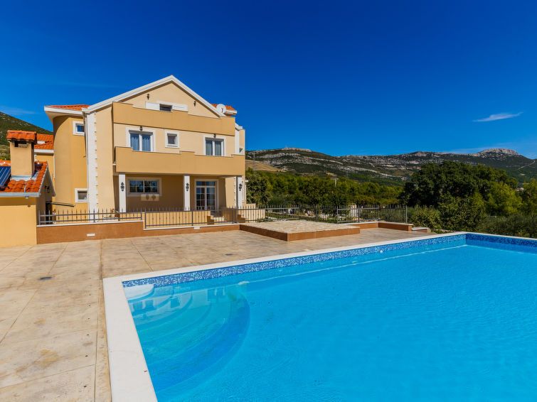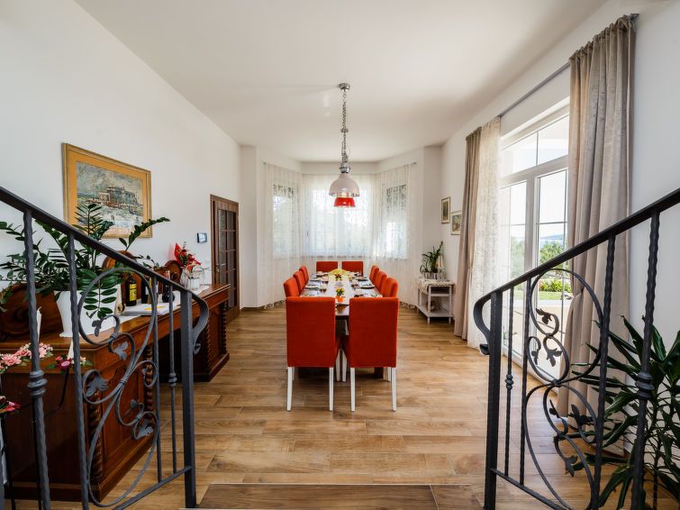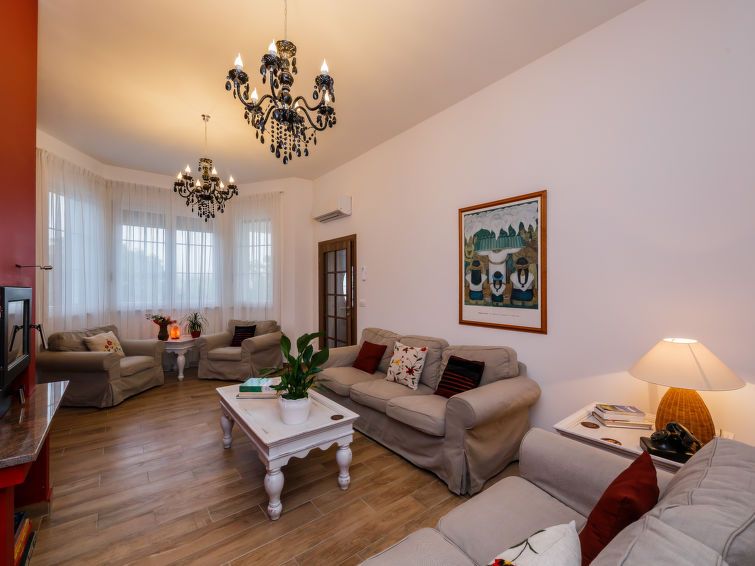 7-room villa 360 m2 on 3 levels, south facing position. Living room 22 m2 with satellite TV (flat screen), air conditioning. Office. Kitchen (oven, dishwasher, 5 gas rings, toaster, microwave, freezer, electric coffee machine) with dining table, air conditioning. Exit to the terrace.