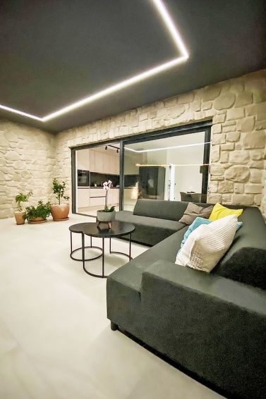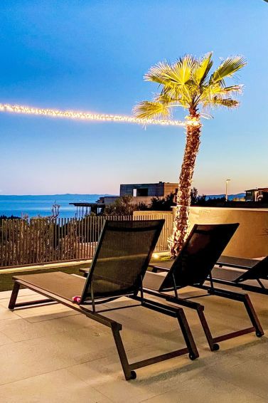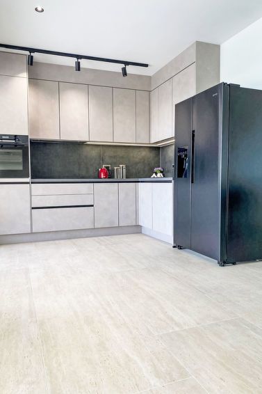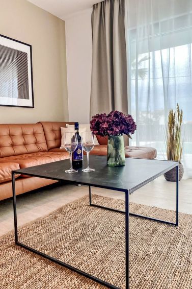 5-room apartment 120 m2. Living/dining room with satellite TV and air conditioning. Exit to the terrace. 1 room with 1 french bed (180 cm, length 200 cm), air conditioning. Open kitchen (oven, dishwasher, 4 induction hot plates, toaster, kettle, microwave, freezer, electric coffee machine).