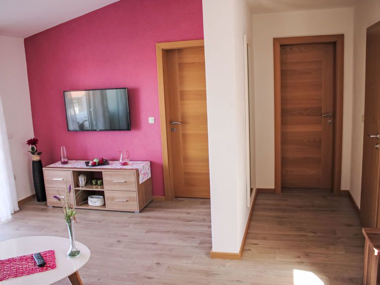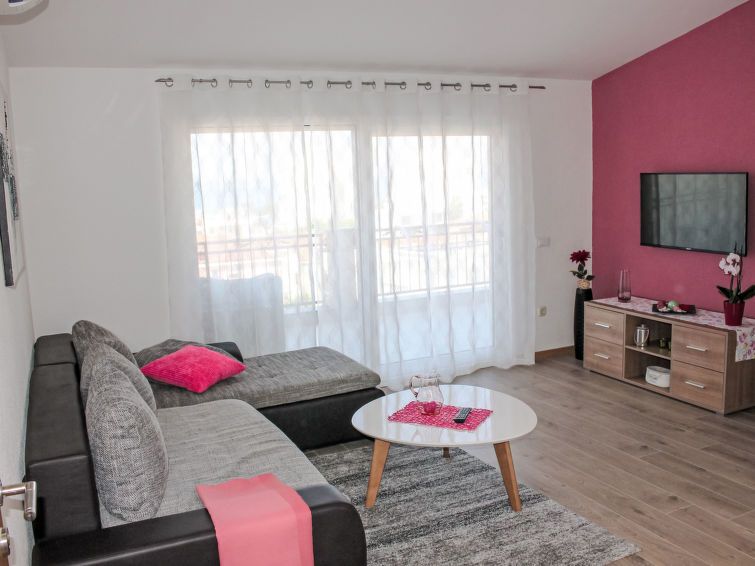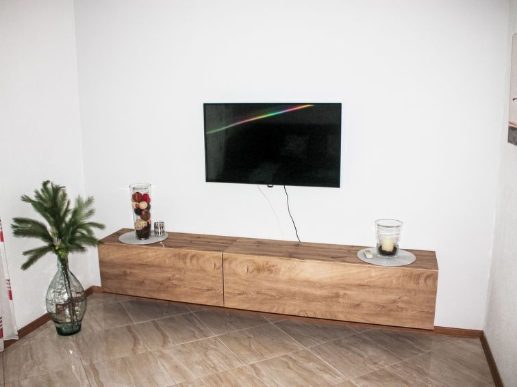 3-room apartment 70 m2 on 2nd floor. Living/dining room with satellite TV and air conditioning. Exit to the balcony. 2 rooms, each room with 1 french bed (160 cm, length 200 cm). Exit to the balcony. Open kitchen (4 ceramic glass hob hotplates, kettle, freezer, electric coffee machine) with dining table.