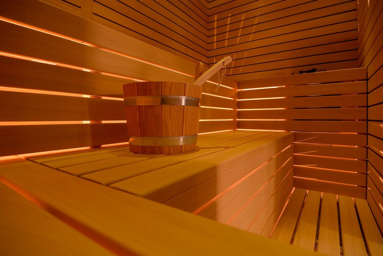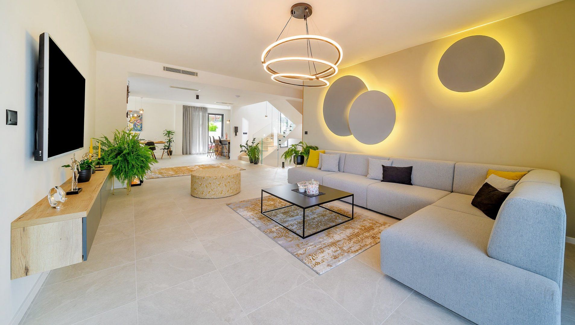 The style here, as you might expect, is modern and glossy, with tiled floors, clean lines and a huge glass and marble staircase through the centre of the villa. An open-plan layout of the living space keeps it all sociable and we love the statement lighting in particular. But this home also has a hidden treasure or two. Head down to the basement and you're met not only with a luxury home gym, but also a sauna and shower room – perfect for freshening up after a workout.