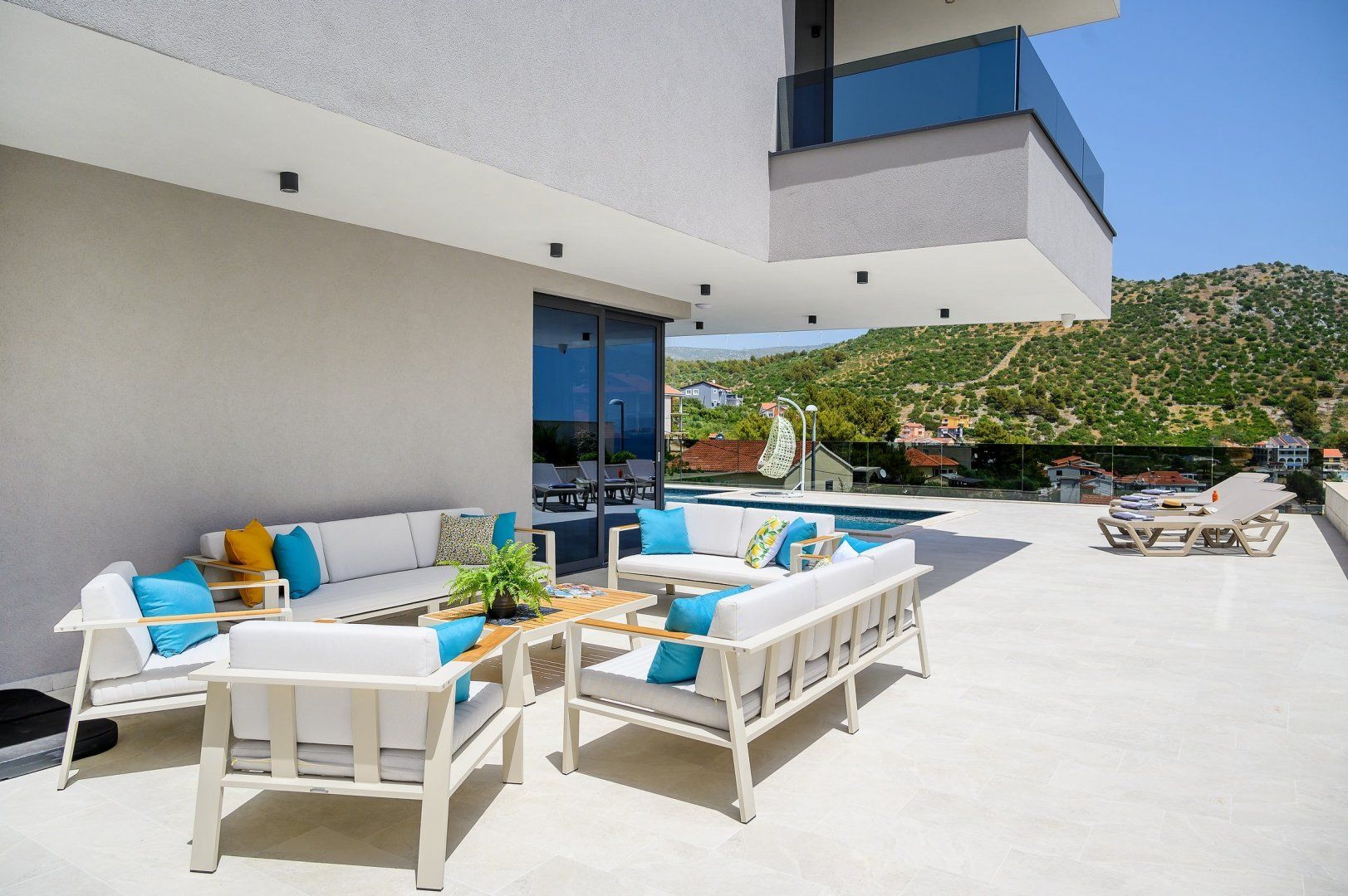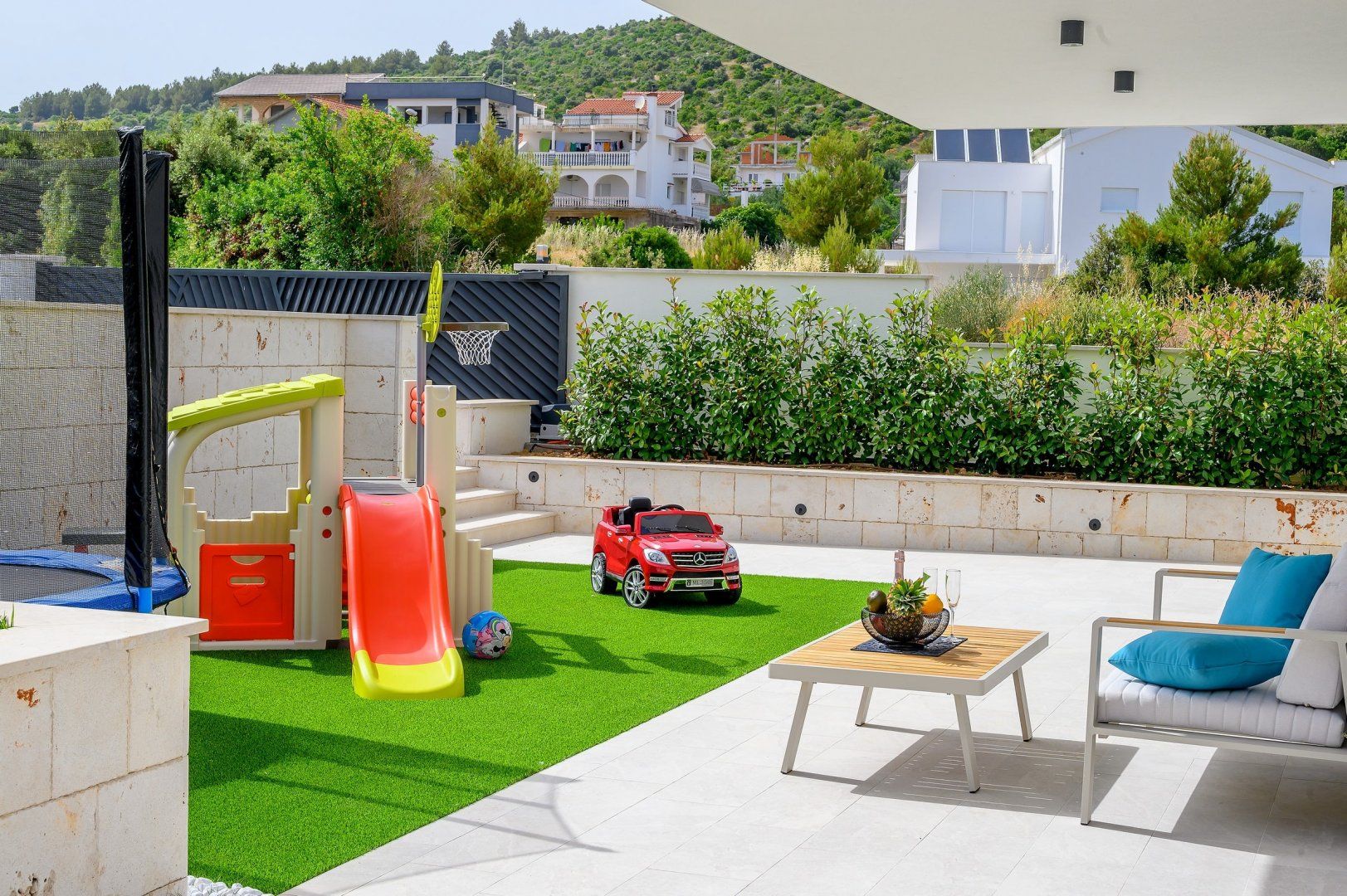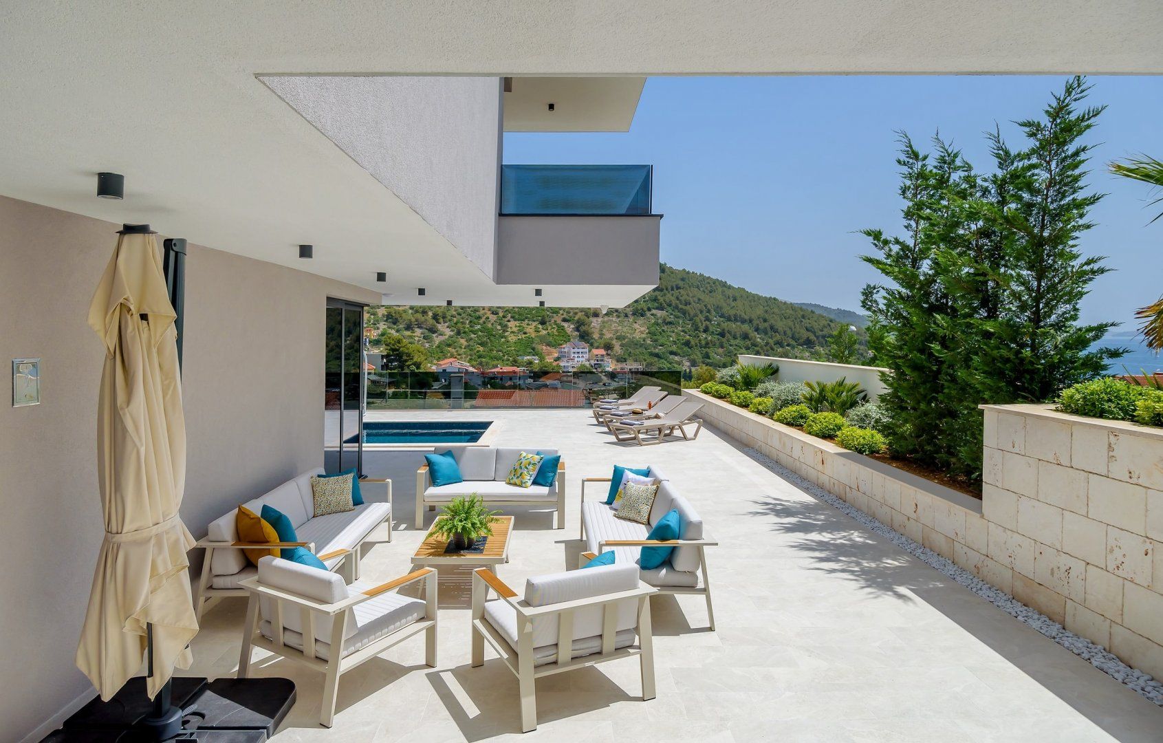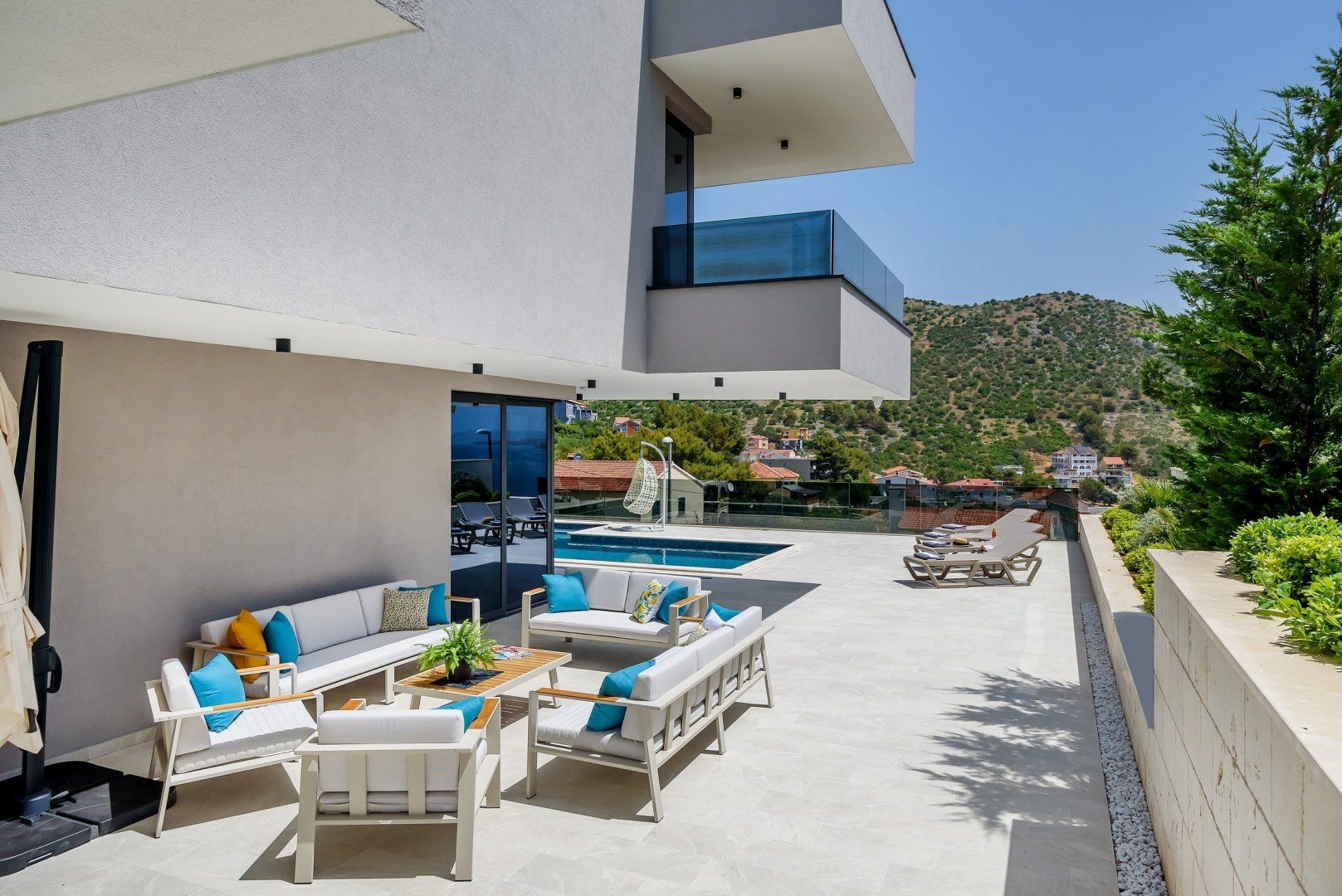 This contemporary home in Marina is angular and striking, with huge terraces making the most of its stunning sea views. Just metres from the water, it's set in a peaceful fishing village just a ten-minute drive from Trogir. And with everything on your doorstep, including cafes and restaurants within walking distance, it's a great choice for a family break.