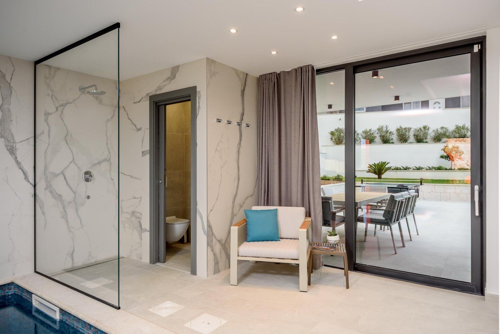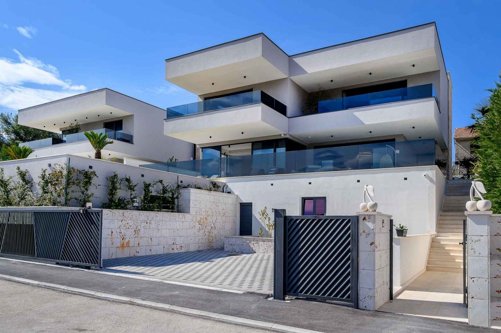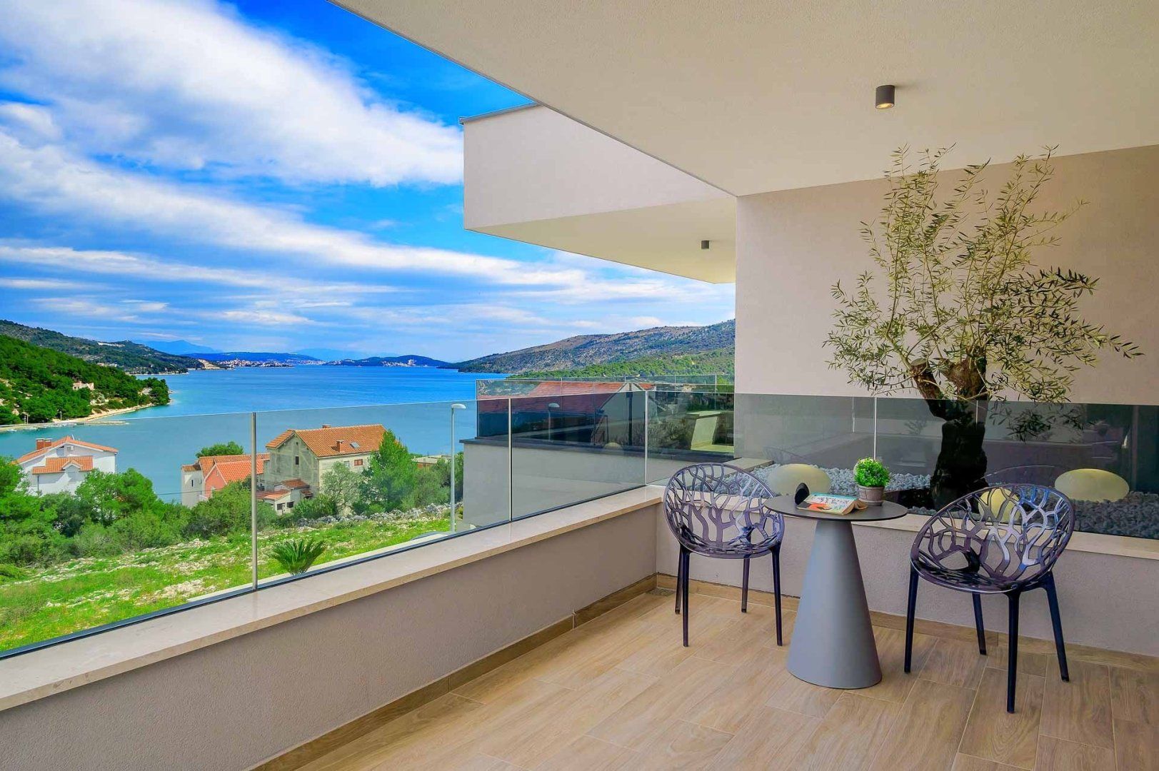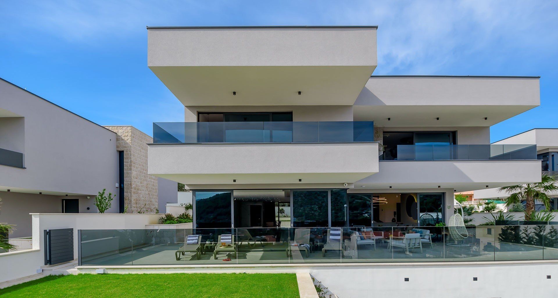 It's not an area known for its contemporary sea-view showstoppers, but that adds to the wow factor of this home in Marina. A peaceful fishing village, just a ten-minute drive from Trogir, it's better known for its traditional terracotta-topped villas and its yachts. But here, alongside its sister villas next door, this modern masterpiece rises over the waterfront, just a matter of moments from the nearest little beach and that crystal-clear, inviting water.