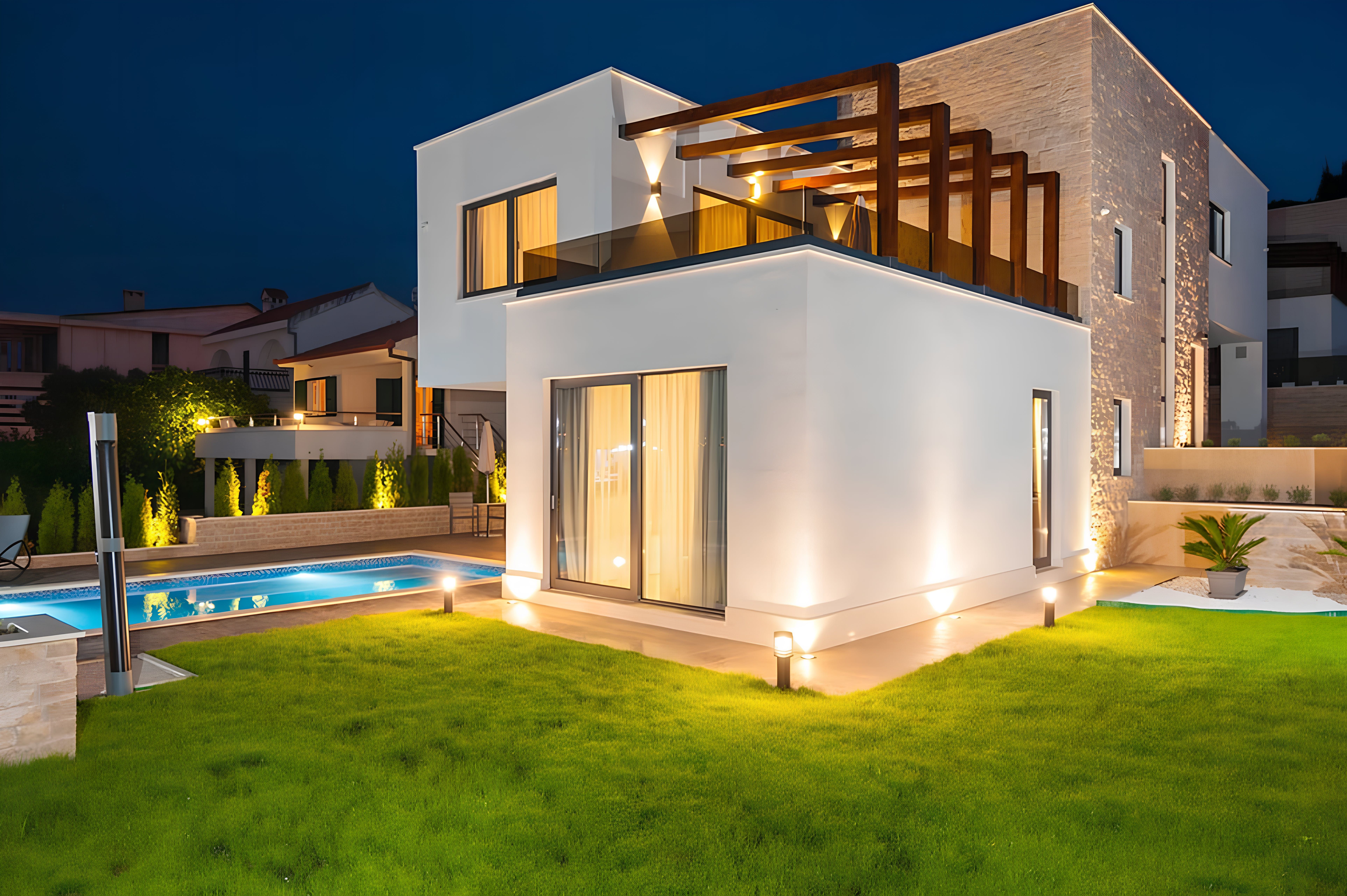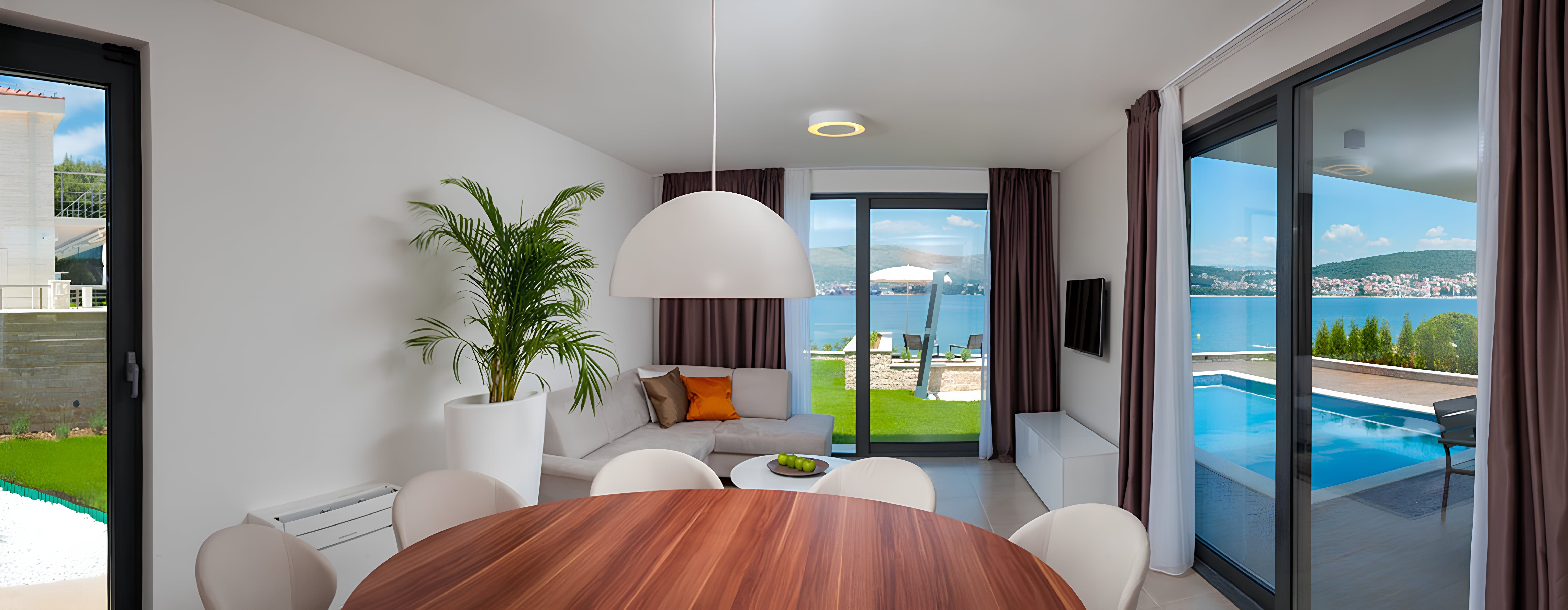 This is a lovely beachfront villa with an indoor pool, outdoor pool, a sauna, and a gym. It is located on the west coast of Ciovo Island, just 15 meters from the beach and within walking distance of shops, restaurants, and cafes. Also nearby is Trogir (5.5 km), a UNESCO-listed Dalmatian town with a seaside promenade, bars and cafes, and top tourist attractions.