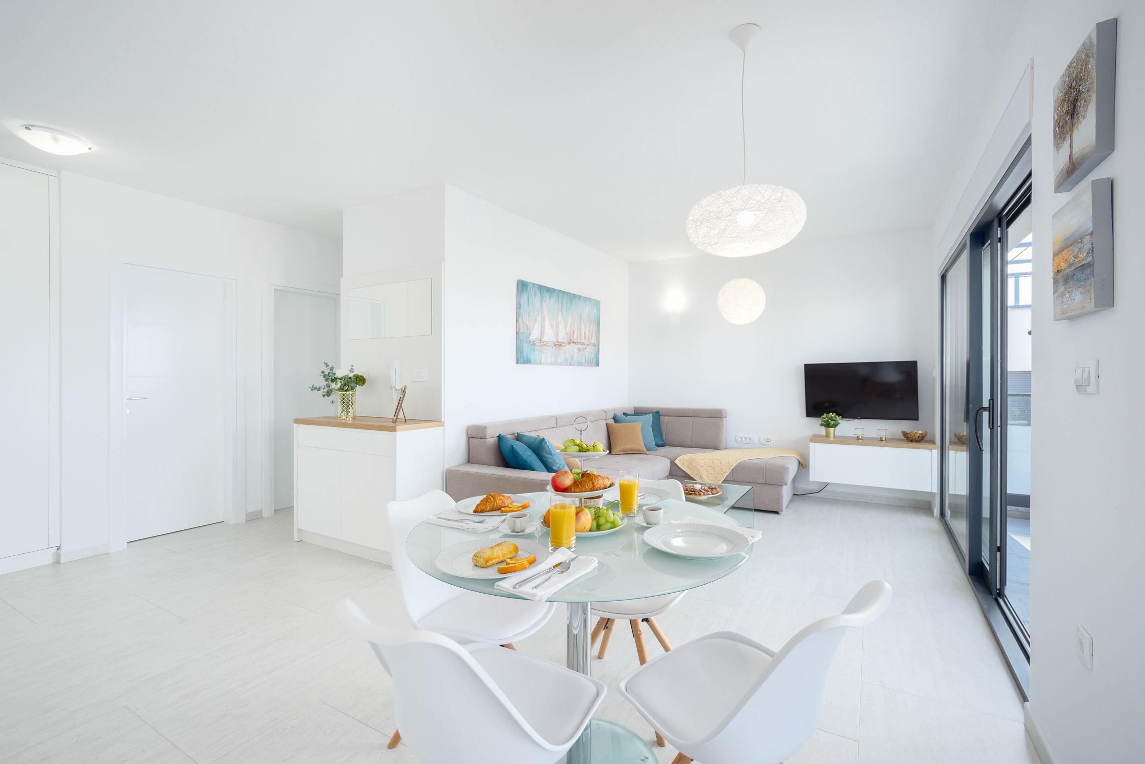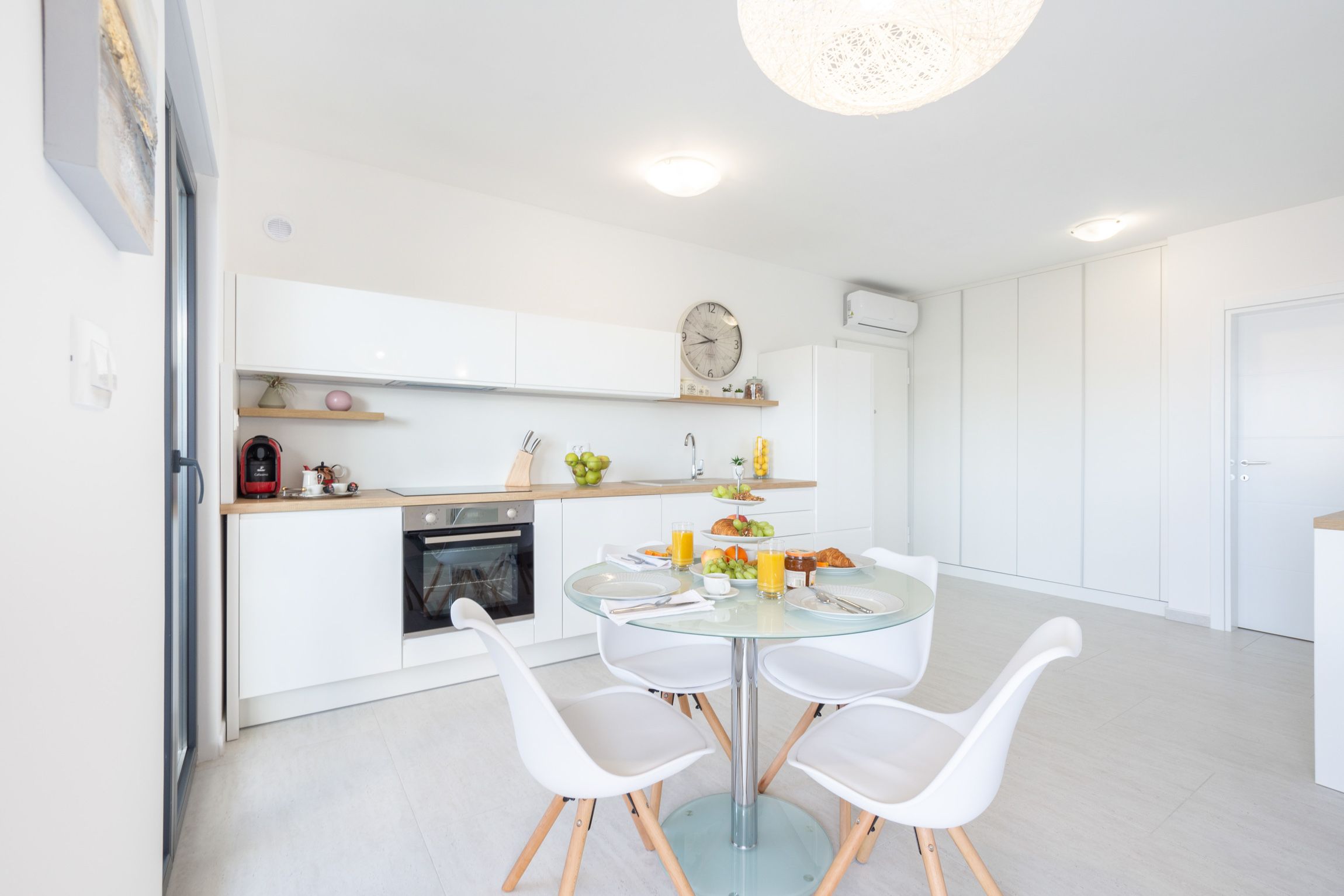 The interior is sleek and modern, with a crisp colour scheme and contemporary furnishings. It's a great place to hang out and hide from the heat, but we think you'll want to spend most of your time outside enjoying the balmy weather. Your private roof terrace has a hot tub where you can relax and enjoy the sea view, along with a summer kitchen and barbeque for whipping up alfresco feasts. And, you'll also have access to the shared swimming pool, for refreshing dips in the sparkling water.