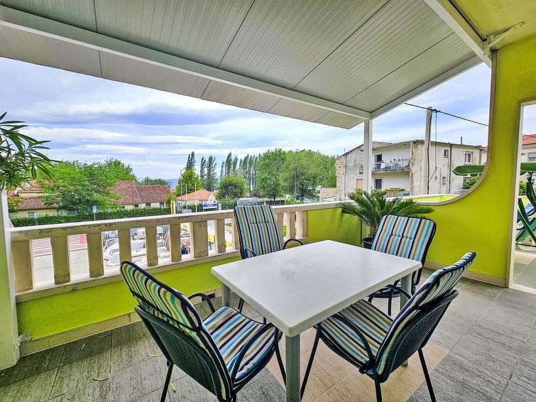 1-room studio 26 m2 on 1st floor. Studio with 1 bed (90 cm, length 200 cm), 1 french bed (160 cm, length 200 cm), TV and air conditioning. Exit to the balcony. Kitchenette (2 hot plates, kettle, microwave) with dining table. Shower/WC. Balcony 22 m2. Balcony furniture. Facilities: Internet (WiFi, free)..