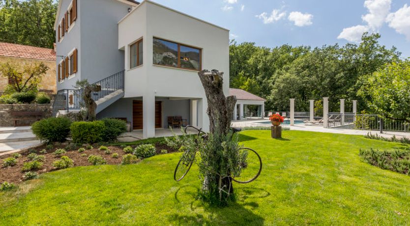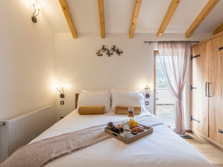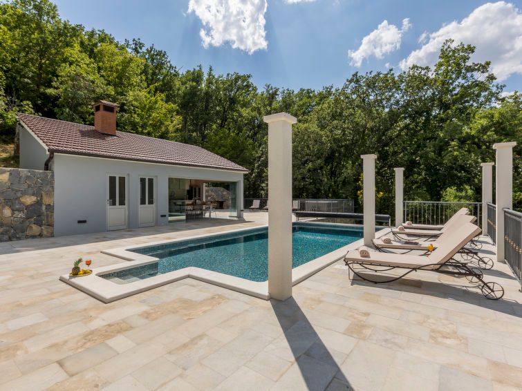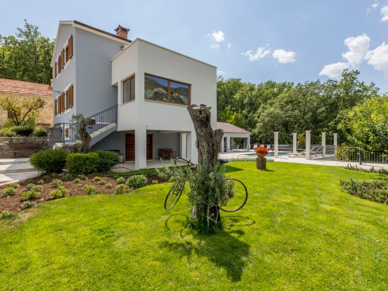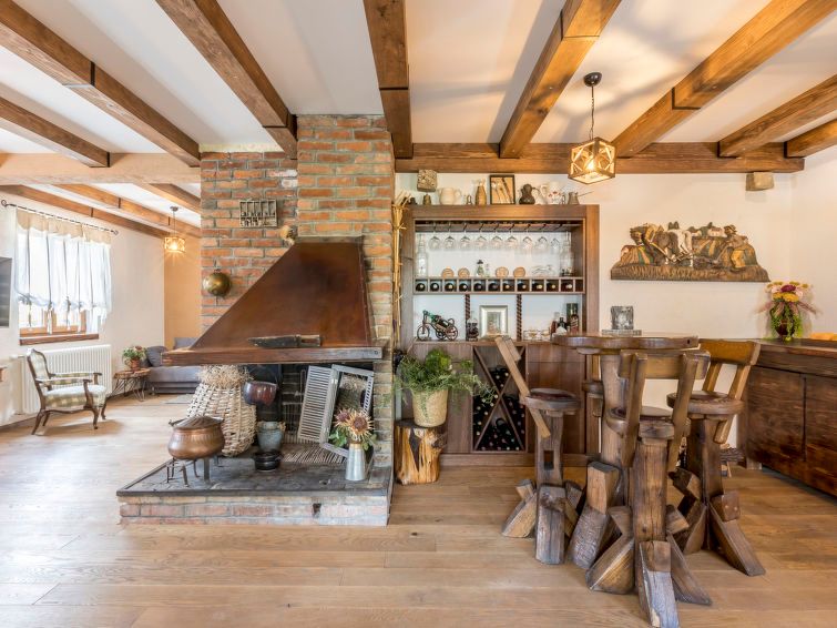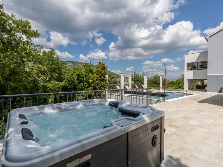 6-room villa 150 m2. Upper floor: living/dining room 45 m2 with satellite TV and air conditioning. 1 room with 1 french bed (160 cm, length 200 cm), satellite TV and air conditioning. Open kitchen (2 hot plates, oven, dishwasher, 2 gas rings, toaster, kettle, microwave, freezer, electric coffee machine).