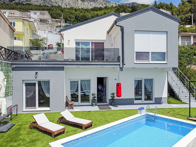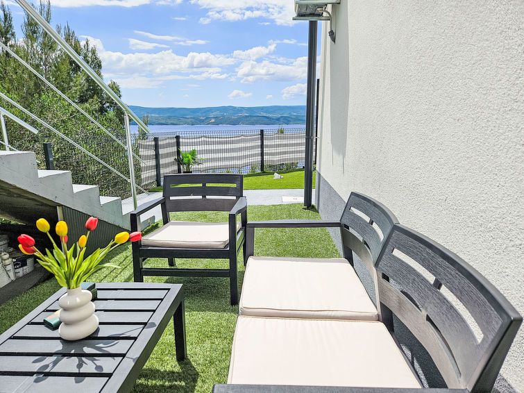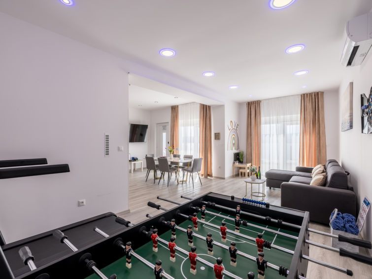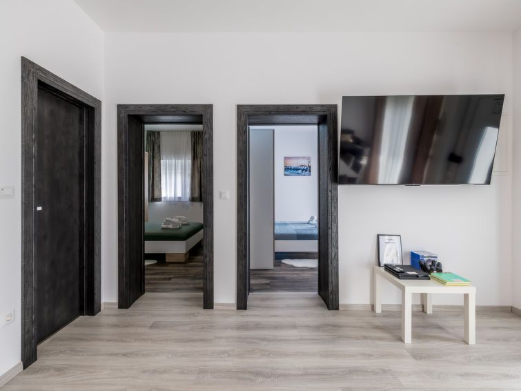 "Luxury Mir", 3-room apartment 80 m2, lower ground floor, south facing position. Living/dining room with 1 double sofabed (140 cm, length 200 cm), satellite TV (flat screen), air conditioning. Exit to the terrace, to the swimming pool. 1 room with 1 french bed (160 cm, length 200 cm), fan.