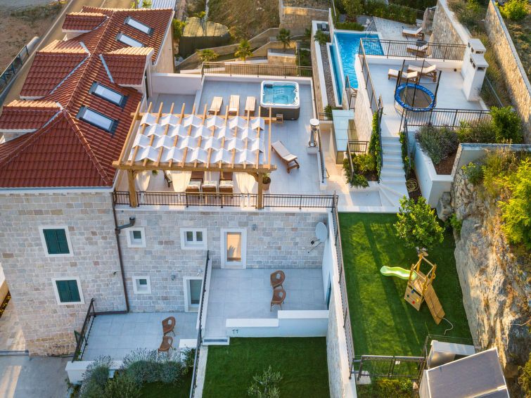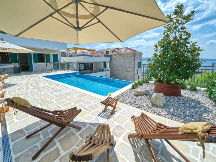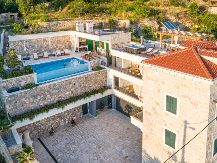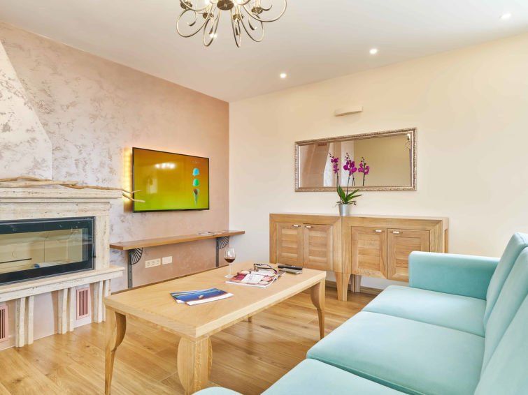 8-room villa 280 m2 on 2 levels. Spacious, beautiful furnishings: living/dining room with open-hearth fireplace and satellite TV (flat screen), air conditioning. Exit to the terrace. 2 rooms, each room with 1 french bed (180 cm, length 200 cm), shower/WC and satellite TV (flat screen).