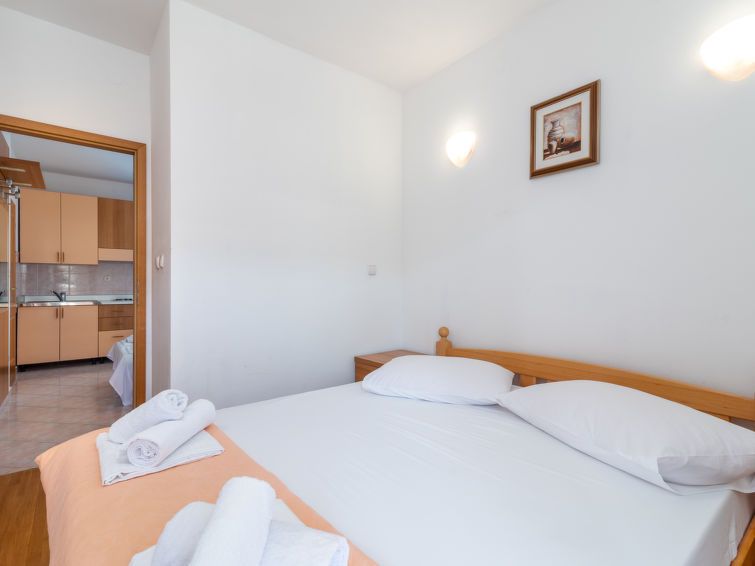 "Apartman 11", 2-room apartment 22 m2 on 1st floor, south facing position. Living/dining room with 1 double sofabed (160 cm, length 200 cm), satellite TV (flat screen), air conditioning. Exit to the balcony. 1 room with 1 french bed (180 cm, length 200 cm), air conditioning. Exit to the balcony.