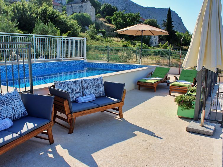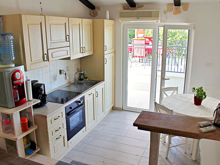 3-room house 56 m2. Living/dining room with satellite TV and air conditioning. Exit to the terrace. 1 room with 1 double bed (180 cm, length 200 cm), air conditioning. 1 room with 2 beds (90 cm, length 200 cm), air conditioning. Open kitchen (oven, dishwasher, 4 ceramic glass hob hotplates, toaster, kettle, freezer, electric coffee machine).