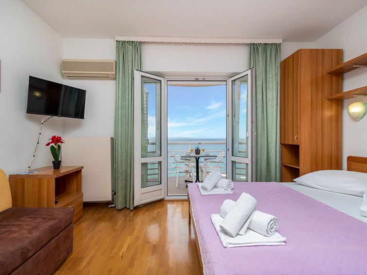 "Studio 16", 1-room studio 19 m2 on 2nd floor, south facing position. Living/sleeping room with 1 french bed (180 cm, length 200 cm), 1 folding bed (80 cm, length 200 cm), satellite TV (flat screen), air conditioning. Exit to the balcony. Open kitchen (2 hot plates, kettle, freezer).