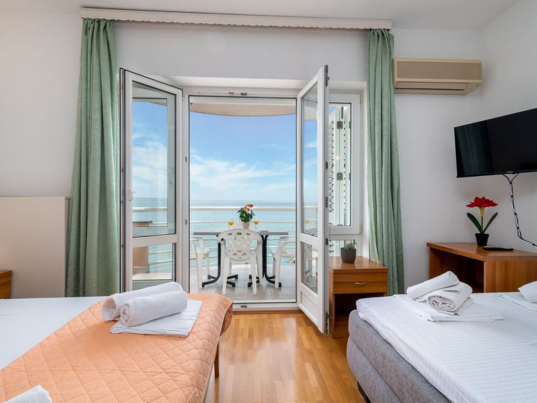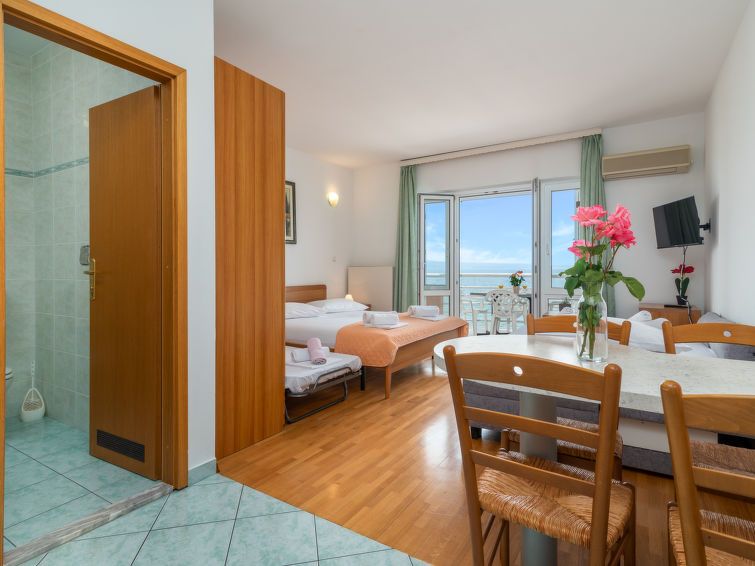 "Studio 17", 1-room studio 25 m2 on 2nd floor, south facing position. Living/sleeping room with 1 double sofabed (160 cm, length 200 cm), 1 french bed (180 cm, length 200 cm), satellite TV (flat screen), air conditioning. Exit to the balcony. Open kitchen (2 hot plates, kettle, freezer).