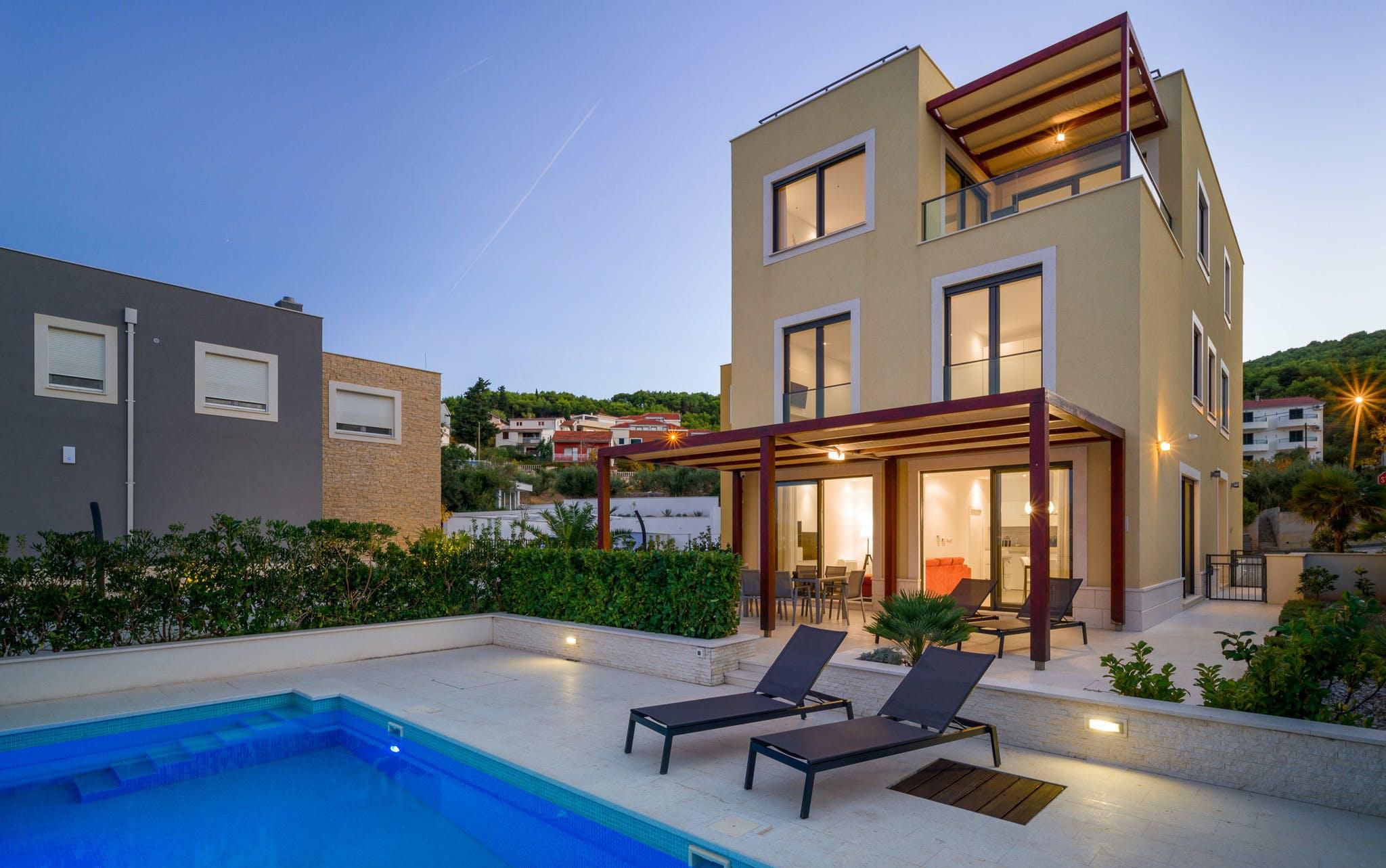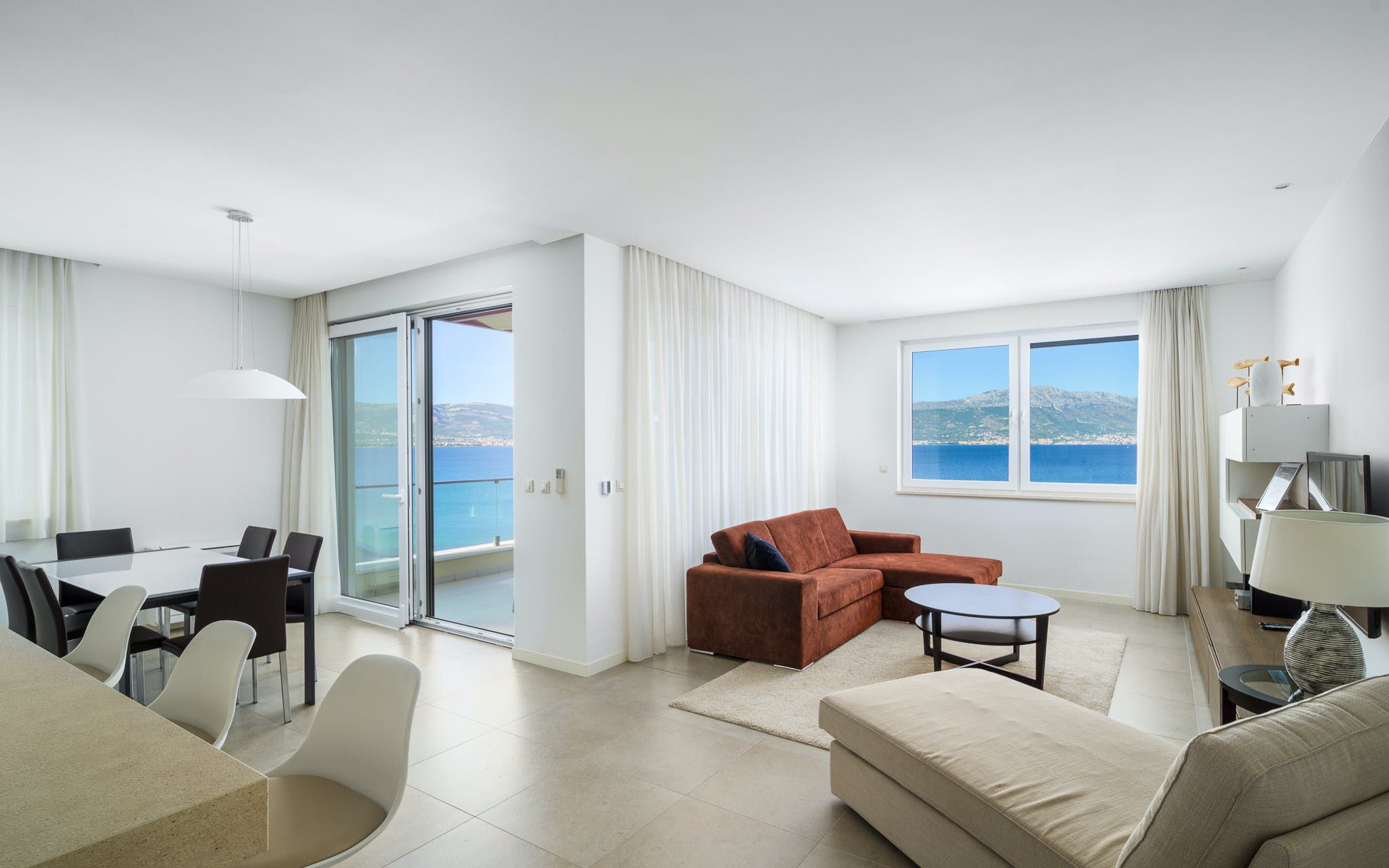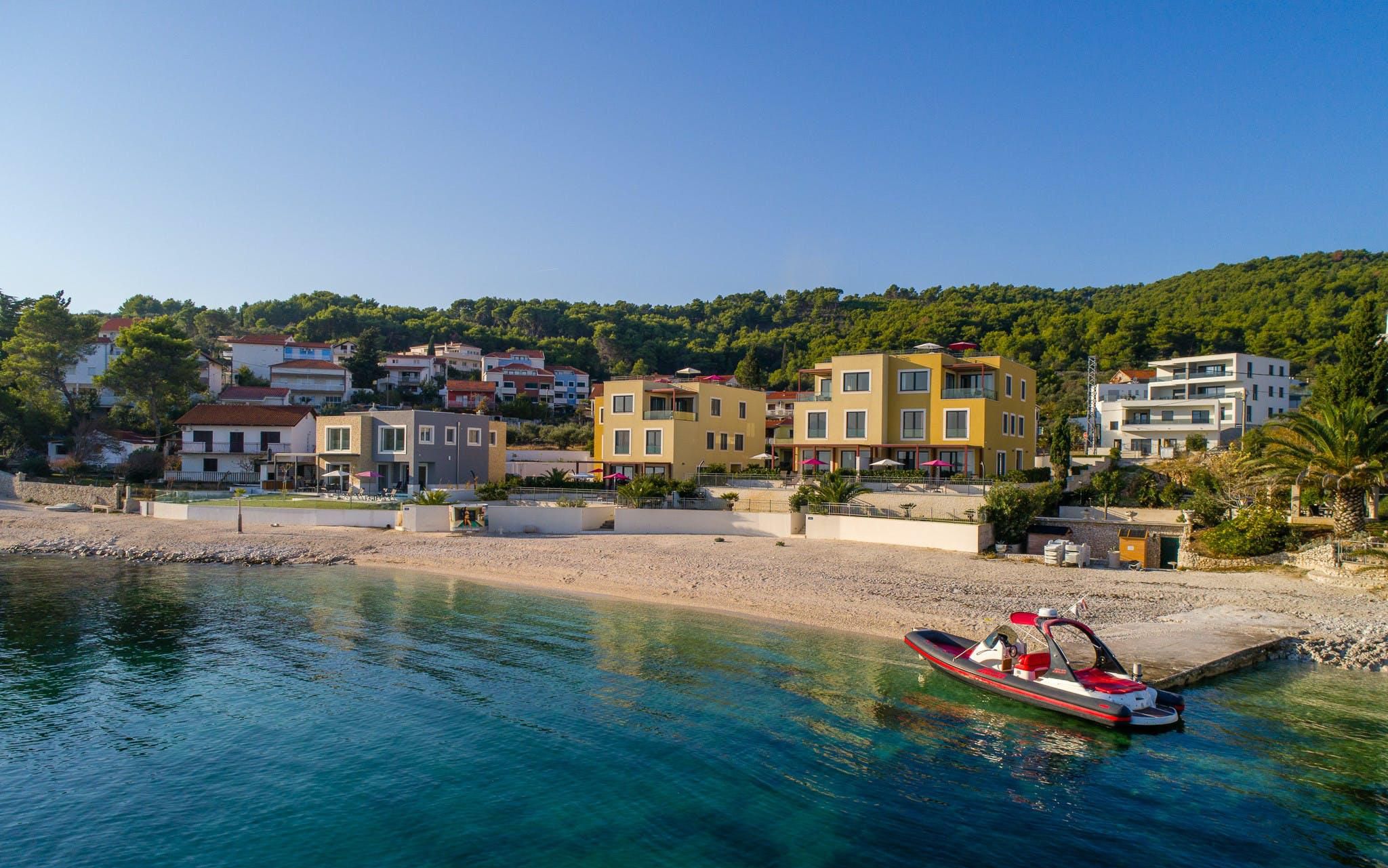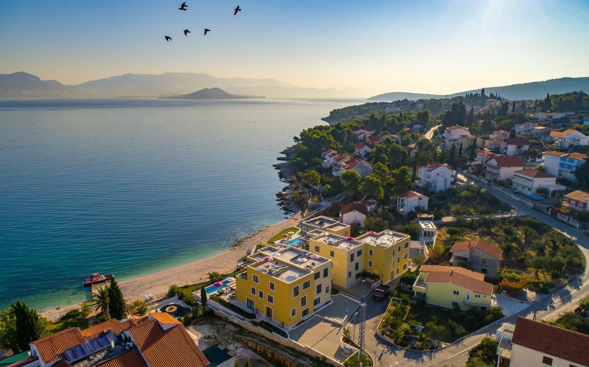 Step inside this home and you’ll be welcomed by stunning sea views. You can stroll straight down to the beach or spend blissful days lounging by the private pool. The terrace is perfect for sunset drinks and there’s a barbecue for alfresco diving. It’s worth noting the rooms are set across two independent apartments, but this is a great option for families looking to stretch out and spend quality time together. You can also enjoy access to the resort gym and it’s just a short walk to the nearest restaurants and shops. Plus, it's a great base for sightseeing with the historic heart of Split just a short drive away.