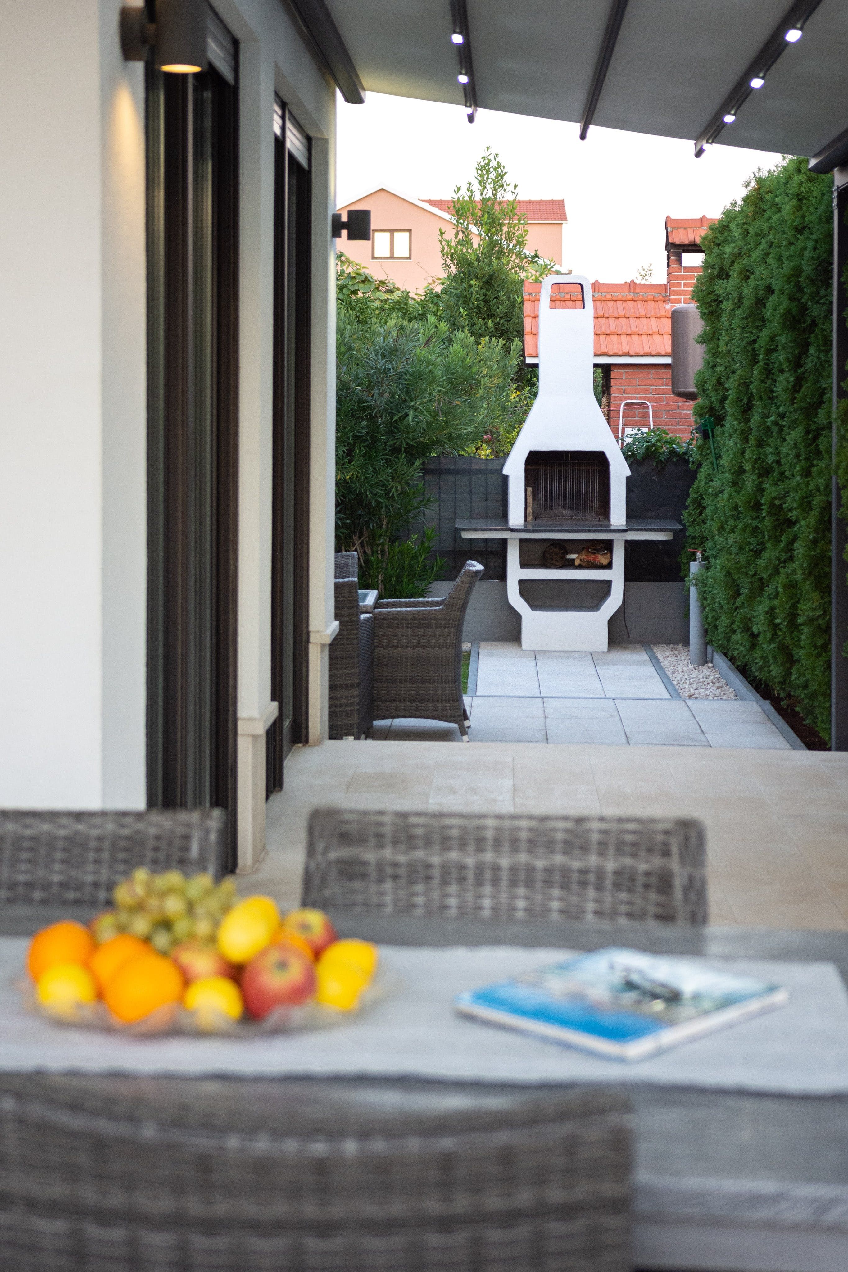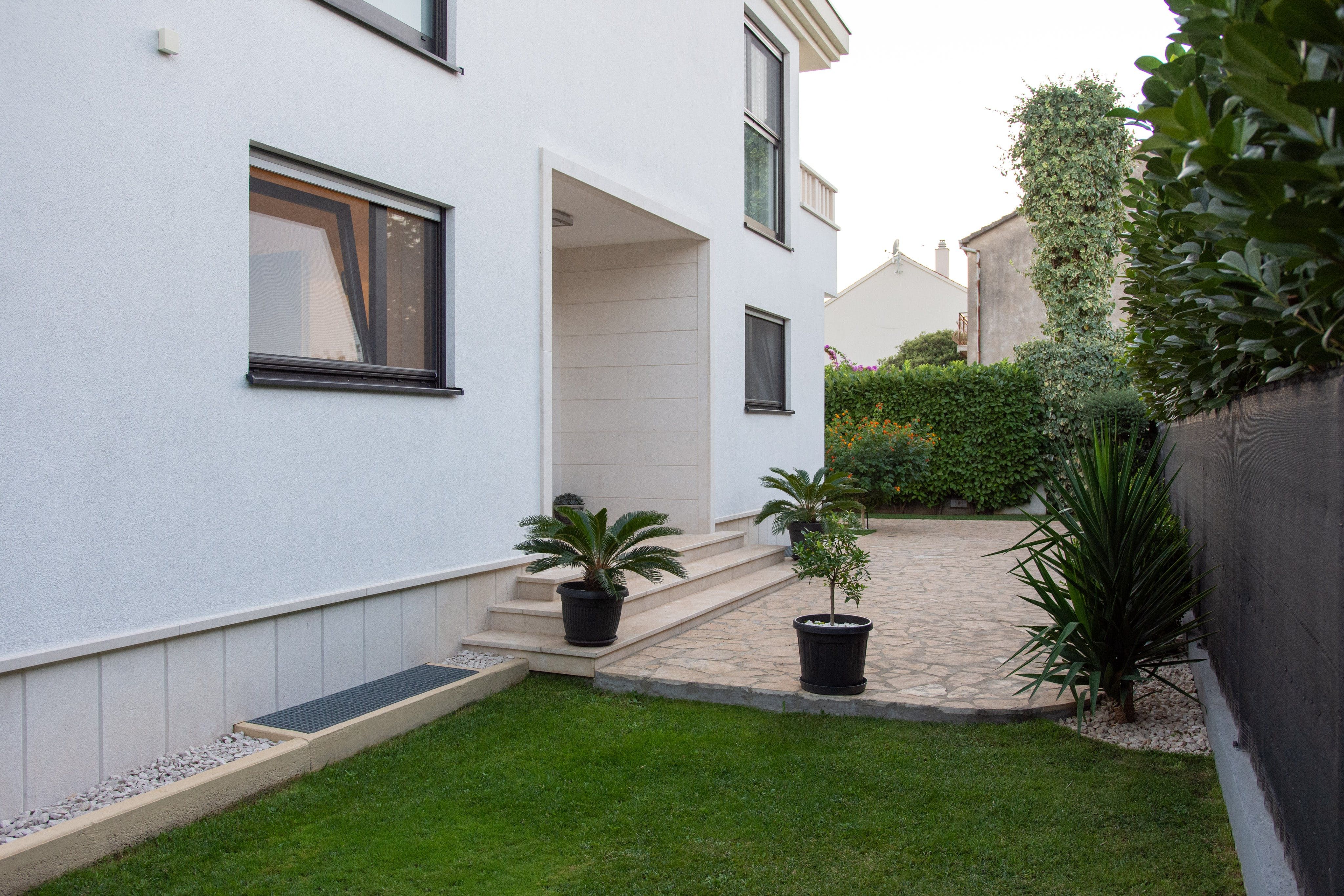 You will immediately sense the aura of this remarkable Dalmatian home – from the interior that shines with sleek white flooring and black compliments throughout, giving it a monotone feel, whilst it is mixed with some traditional elements and spiced with selected designer details. Prepare for family meals at the dining table as you gaze through the many windows that bring light beaming into this home. If you want to maintain your routine while on holiday, take yourself to the gym for a workout or the sauna for a relaxing moment. Spend your days outside in the summer heat, surrounded by a private garden filled with Mediterranean herbs, allowing you to absorb the genuine essence of summer living before taking a plunge in the pool or staying shaded by a pergola. Head upstairs to the bedrooms and step out onto the balcony to take in the stunning sea views of Trogir bay, the island of Čiovo, the city of Split and Kaštela – you're spoiled for choice.