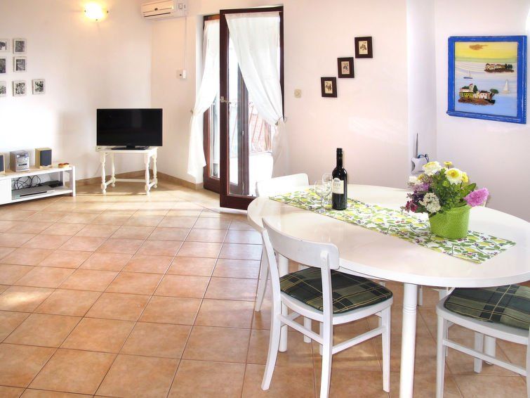 3-room apartment 52 m2 on 1st floor. Living/dining room with 1 sofabed and satellite TV (flat screen), air conditioning. Exit to the balcony. 1 room with 2 beds. 1 room with 1 french bed (160 cm). Open kitchen (oven, dishwasher, 4 ceramic glass hob hotplates, freezer, electric coffee machine).