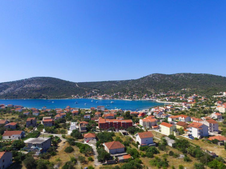 "Filip Jakov", 3-room apartment 100 m2 on 2nd floor. Living/dining room with 1 double sofabed (160 cm), satellite TV and air conditioning. Exit to the balcony. 2 rooms, each room with 1 french bed. Open kitchen (2 hot plates, oven, dishwasher, 2 gas rings, toaster, kettle, freezer, electric coffee machine).