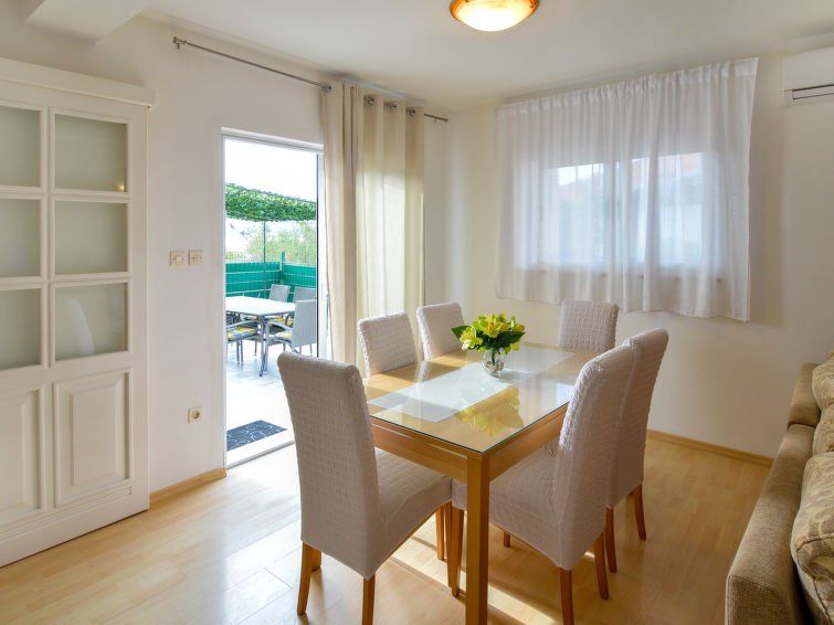 "Klarić", 4-room apartment 95 m2, on the ground floor. Living/dining room with satellite TV (flat screen), air conditioning. Exit to the terrace. 1 room with 1 french bed. 1 room with 1 bed and 1 french bed. 1 room with 1 double bed. Kitchen (1 hot plate, oven, dishwasher, 3 gas rings, toaster, kettle, microwave, freezer, electric coffee machine).
