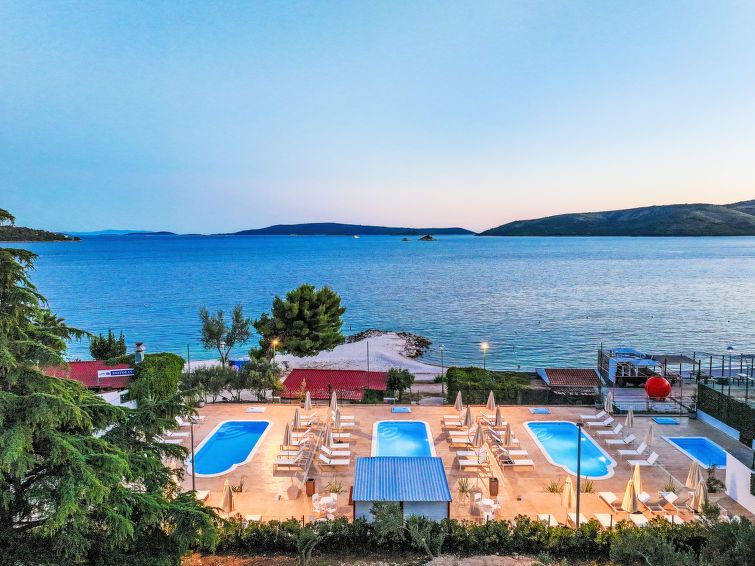 3-room apartment 46 m2 on 1st floor, south facing position. Living/dining room with 1 sofabed (80 cm, length 180 cm), satellite TV (flat screen), air conditioning. Exit to the terrace. 2 rooms, each room with 2 beds (90 cm, length 200 cm). Open kitchen (2 ceramic glass hob hotplates, microwave, electric coffee machine).