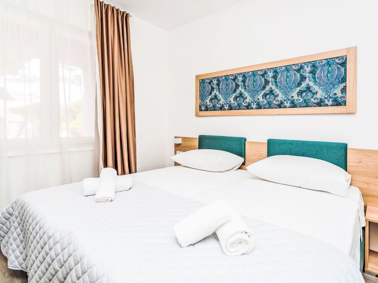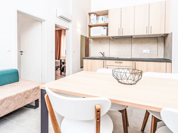 2-room apartment 42 m2, on the ground floor, south facing position. Living/dining room with 1 double sofabed (160 cm, length 200 cm), satellite TV (flat screen), air conditioning. Exit to the terrace. 1 room with 2 beds (90 cm, length 200 cm), air conditioning. Open kitchen (2 ceramic glass hob hotplates, microwave, electric coffee machine).