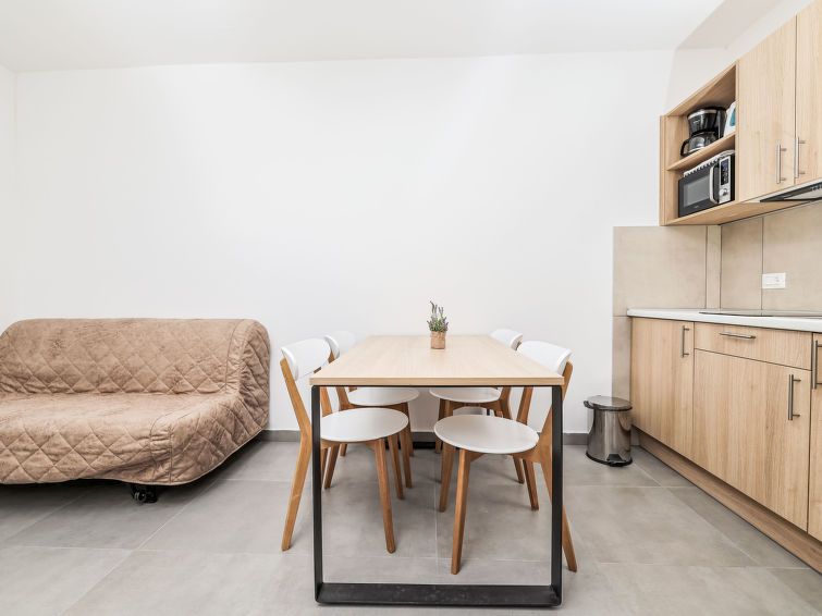 2-room apartment 42 m2, on the ground floor, south facing position. Living/dining room with 1 double sofabed (160 cm, length 200 cm), satellite TV (flat screen), air conditioning. Exit to the terrace. 1 room with 2 beds (90 cm, length 200 cm), air conditioning. Open kitchen (2 ceramic glass hob hotplates, microwave, electric coffee machine).