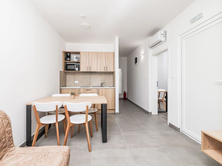 2-room apartment 42 m2, on the ground floor, south facing position. Living/dining room with 1 double sofabed (160 cm, length 200 cm), satellite TV (flat screen), air conditioning. Exit to the terrace. 1 room with 2 beds (90 cm, length 200 cm), air conditioning. Open kitchen (2 ceramic glass hob hotplates, microwave, electric coffee machine).