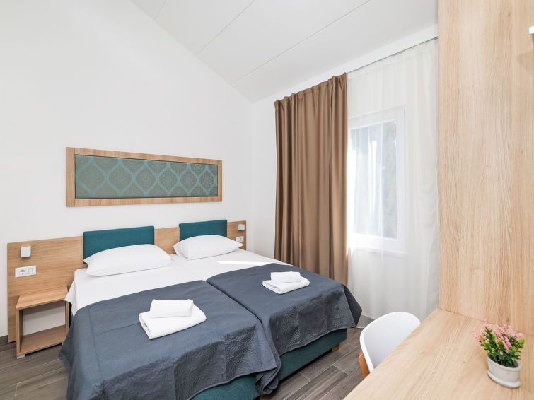 3-room apartment 46 m2 on 1st floor, south facing position. Living/dining room with 1 sofabed (80 cm, length 180 cm), satellite TV (flat screen), air conditioning. Exit to the terrace. 2 rooms, each room with 2 beds (90 cm, length 200 cm). Open kitchen (2 ceramic glass hob hotplates, microwave, electric coffee machine).