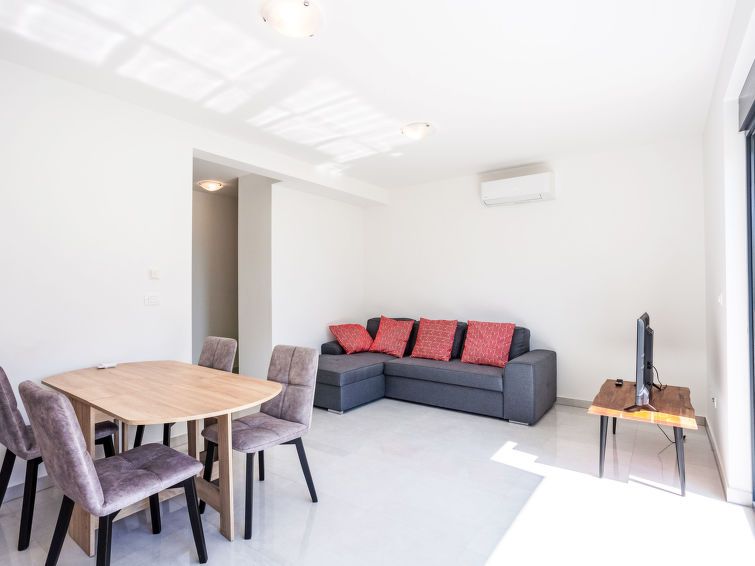 "Sunny Pool", 3-room apartment 51 m2, on the ground floor, south facing position. Living/dining room with 1 sofabed (120 cm, length 200 cm), satellite TV (flat screen), air conditioning. Exit to the terrace, to the swimming pool. 1 room with 1 french bed (160 cm, length 200 cm), air conditioning.