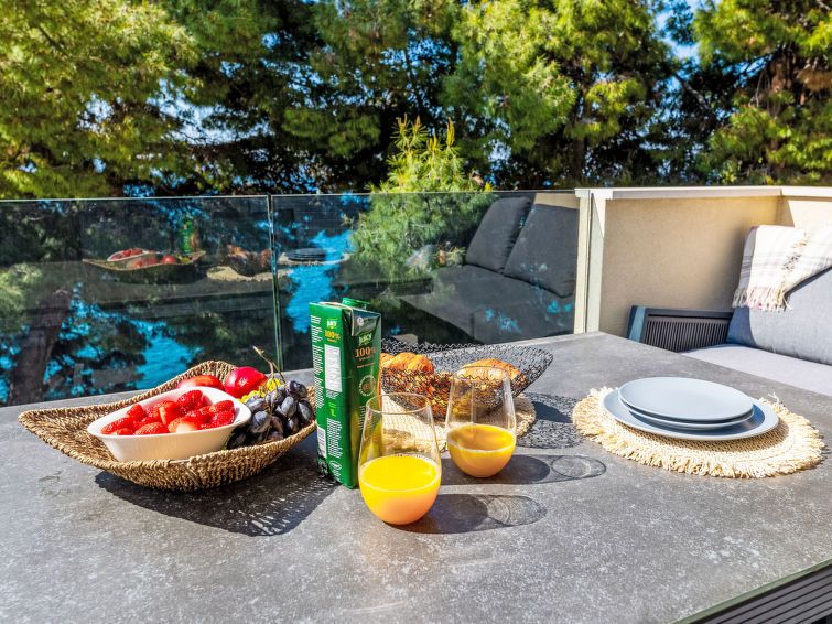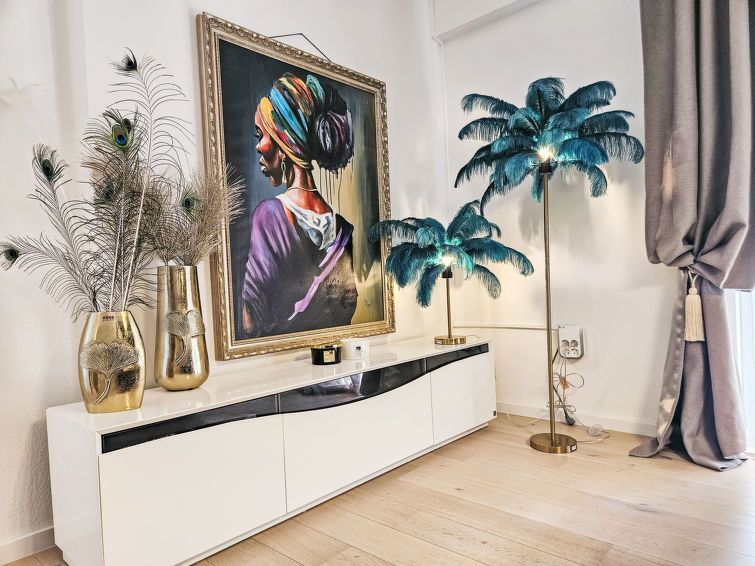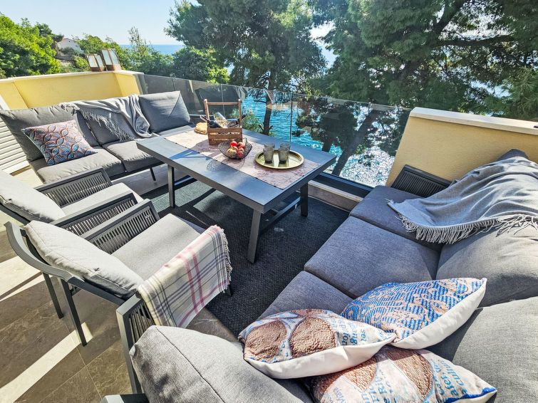 5-room apartment 130 m2 on 1st floor, south facing position. Beautiful and stylish furnishings: living/dining room with satellite TV (flat screen), air conditioning. Exit to the balcony. 1 room with 2 beds (90 cm, length 200 cm), shower/WC. Exit to the terrace. 2 rooms, each room with 1 french bed (160 cm, length 200 cm).