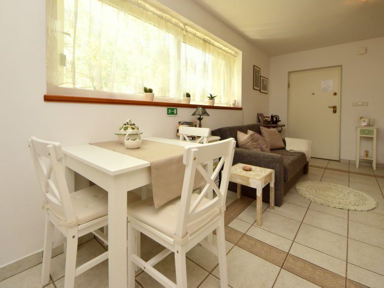 2-room apartment 46 m2, on the ground floor. Beautiful and tasteful furnishings: living/dining room 24 m2 with satellite TV, DVD and air conditioning. Exit to the terrace. 1 room with 1 double bed (2 x 90 cm, length 200 cm). Open kitchen (4 hot plates, oven, dishwasher, microwave, freezer).