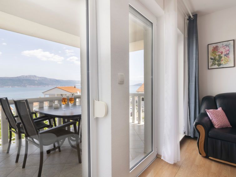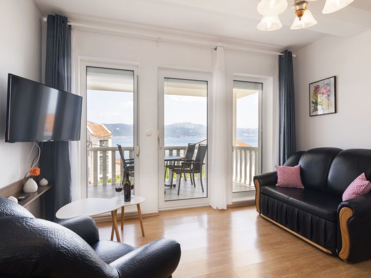 2 bedrooms with balconies, living room with kitchenette and a beautiful view from the terrace. The kitchen is equipped with an oven, hob, dishwasher, large fridge and all necessary accessories. Everywhere clean, elegant. The owner is very nice, preferably speaks German or Croatian. But you can easily communicate. Each apartment has its own parking space under the grape.