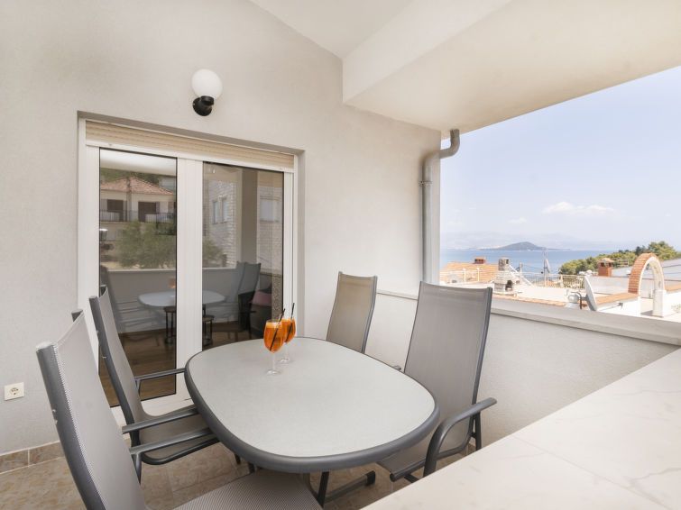 Apartment was very clean. There was air condition and fan, that helped when it was hot outside. Two balcony, one to dry clothes and one to sit outside and enjoy the view. Balcony what you see on the picture is available for everybody. Nice place to stay and owner very friendly and helpful. Close to the beach. Wi- fi very slow, impossible to use. Tv programs all in german and one BBC news.
